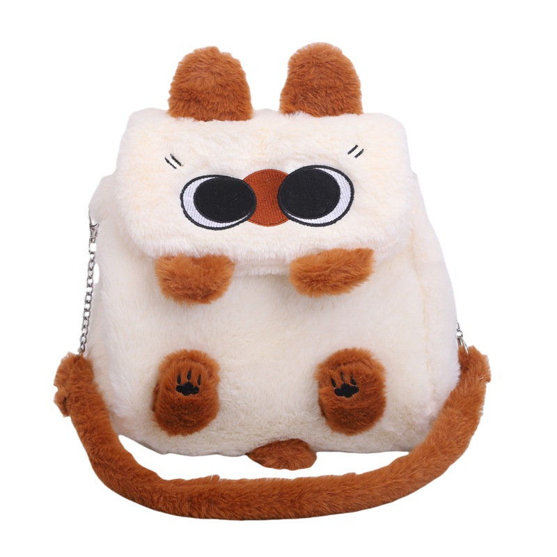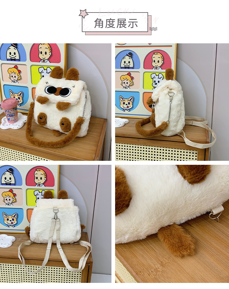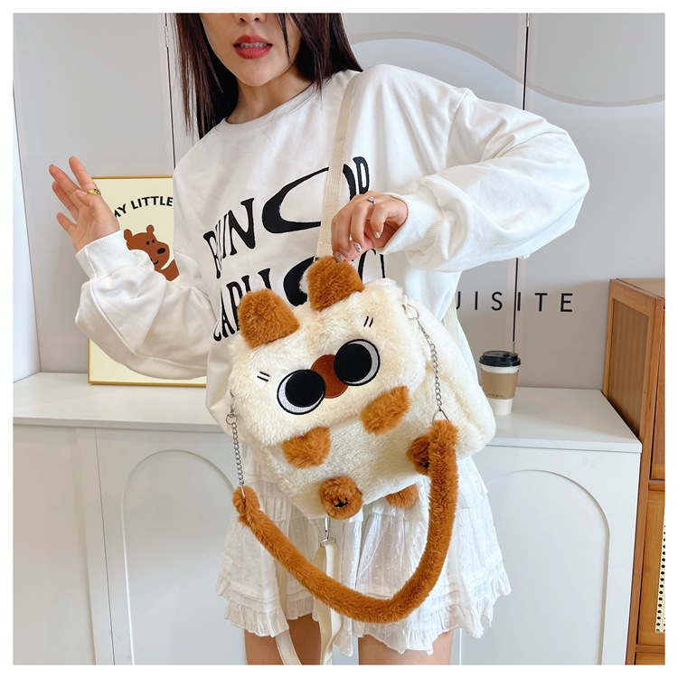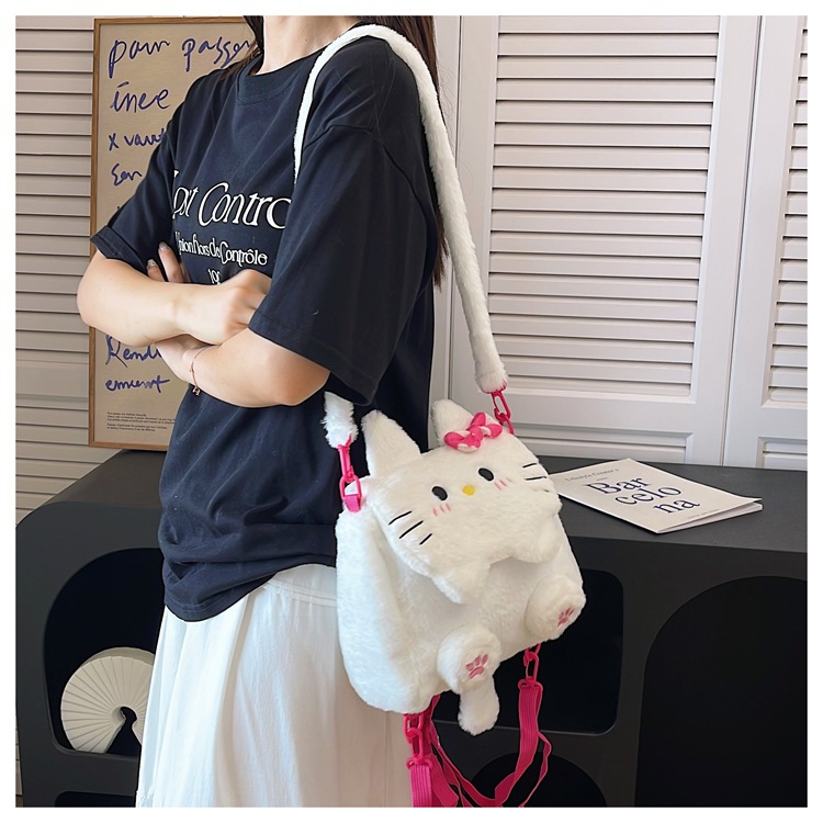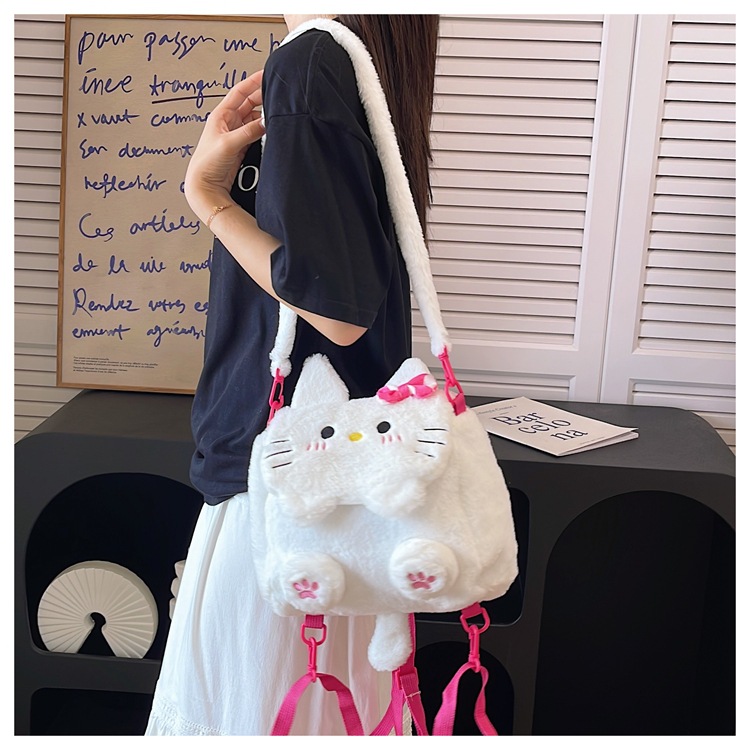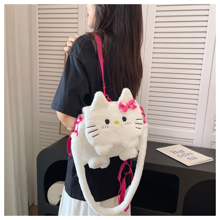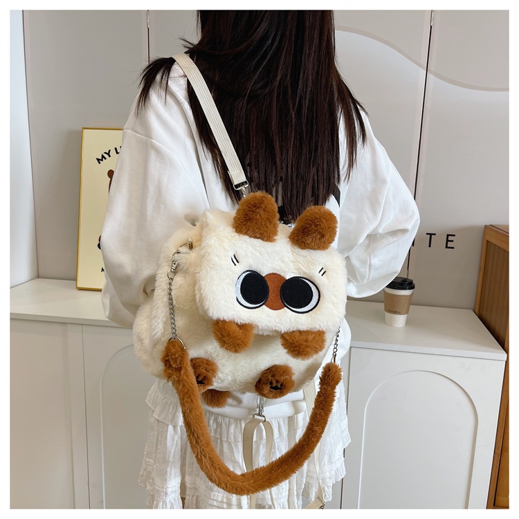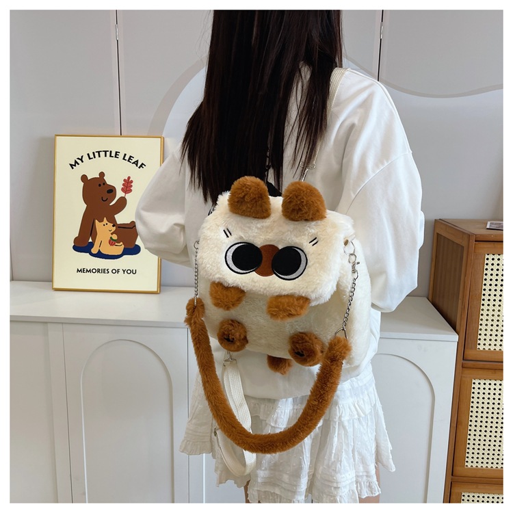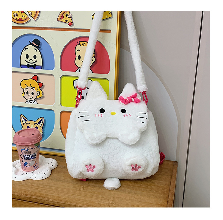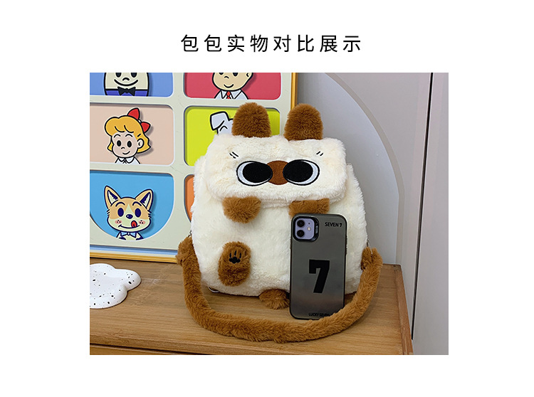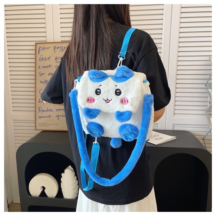 귀여운 작은 콩 고양이 봉제 배낭 2024 새로운 대용량 모든 학생 배낭 통근 만화 크로스 바디 백