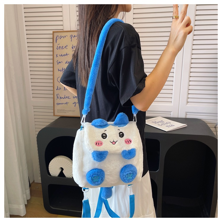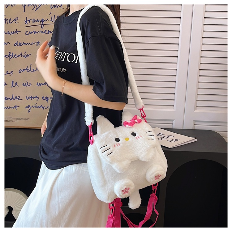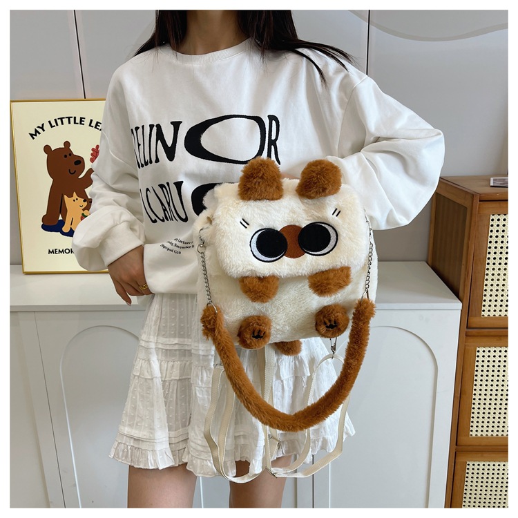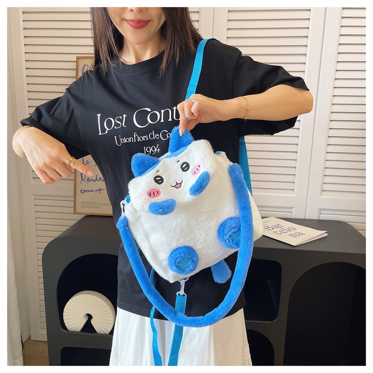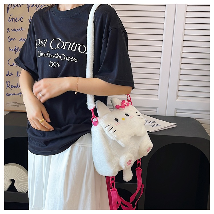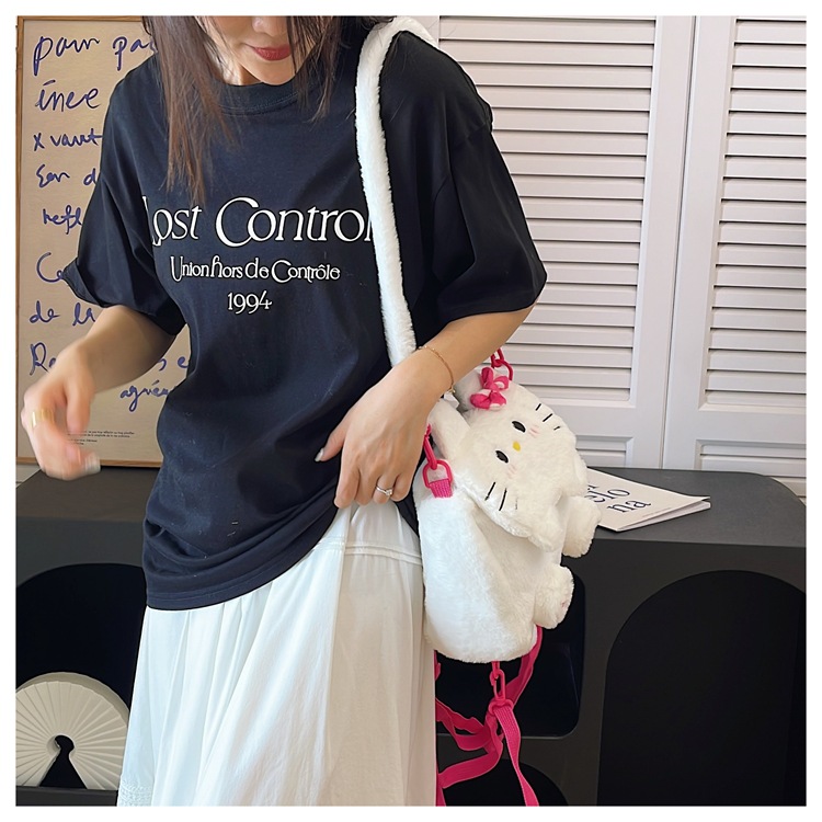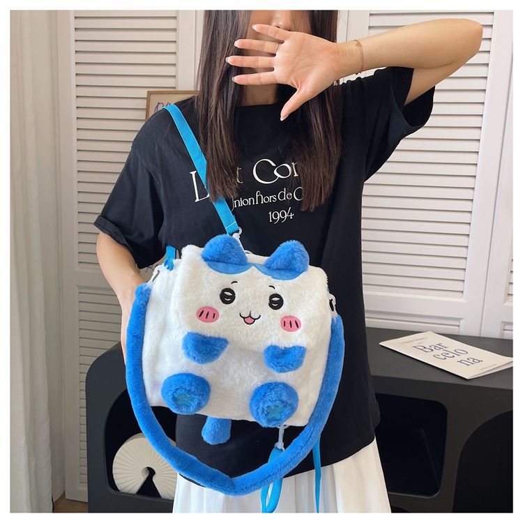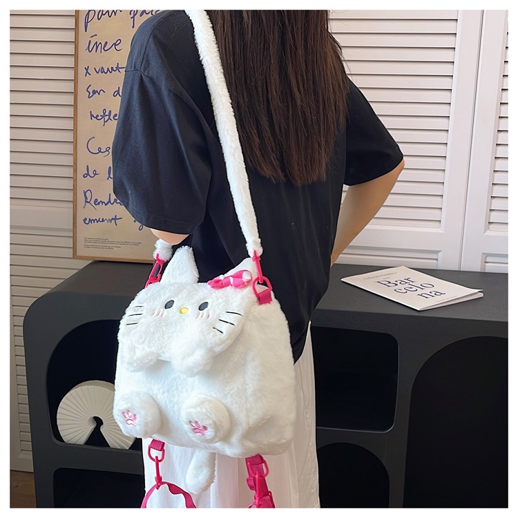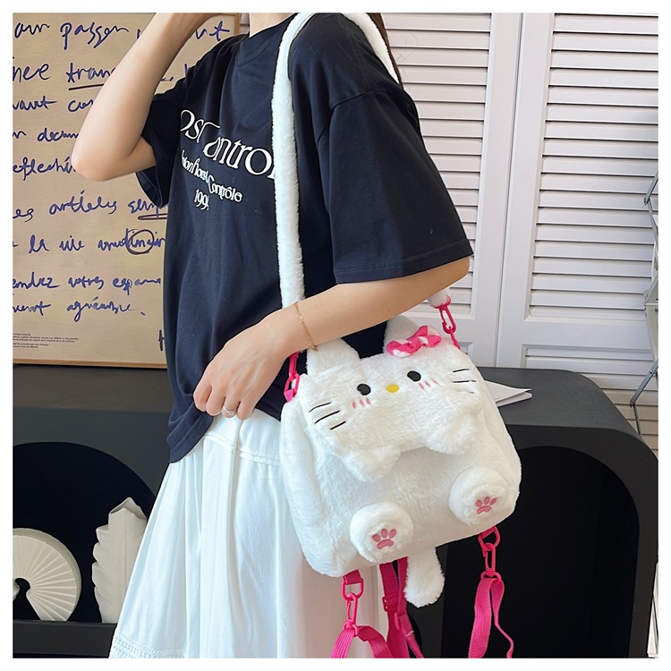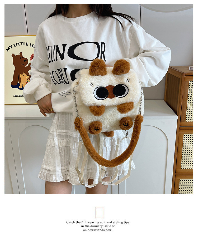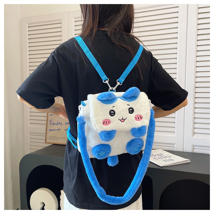 귀여운 작은 콩 고양이 봉제 배낭 2024 새로운 대용량 모든 학생 배낭 통근 만화 크로스 바디 백