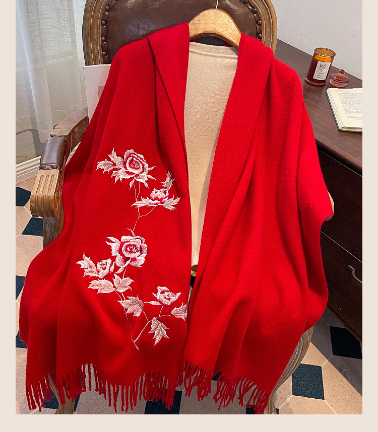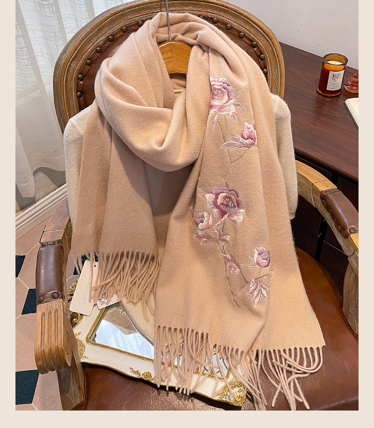 양모 스카프 여성 국가 스타일 수 놓은 양모 목도리 장모 생일 선물 상자스토어 가기
