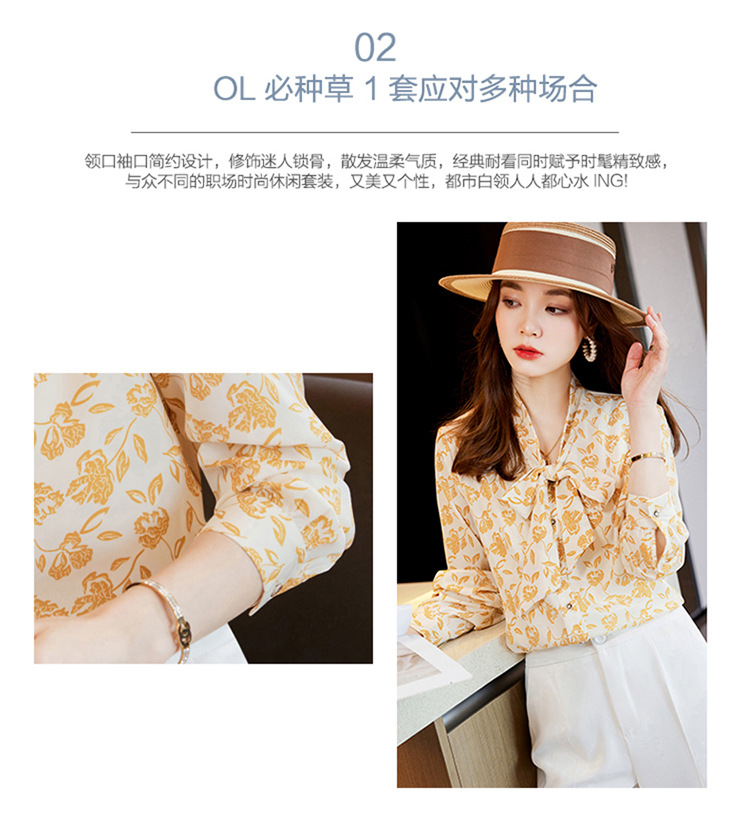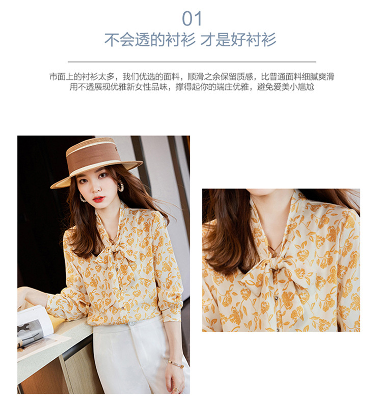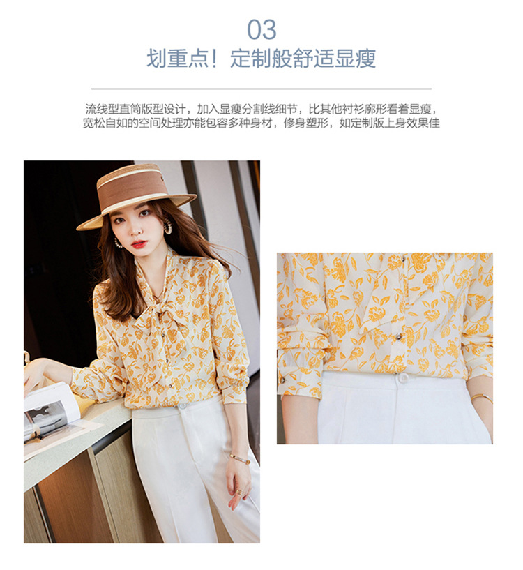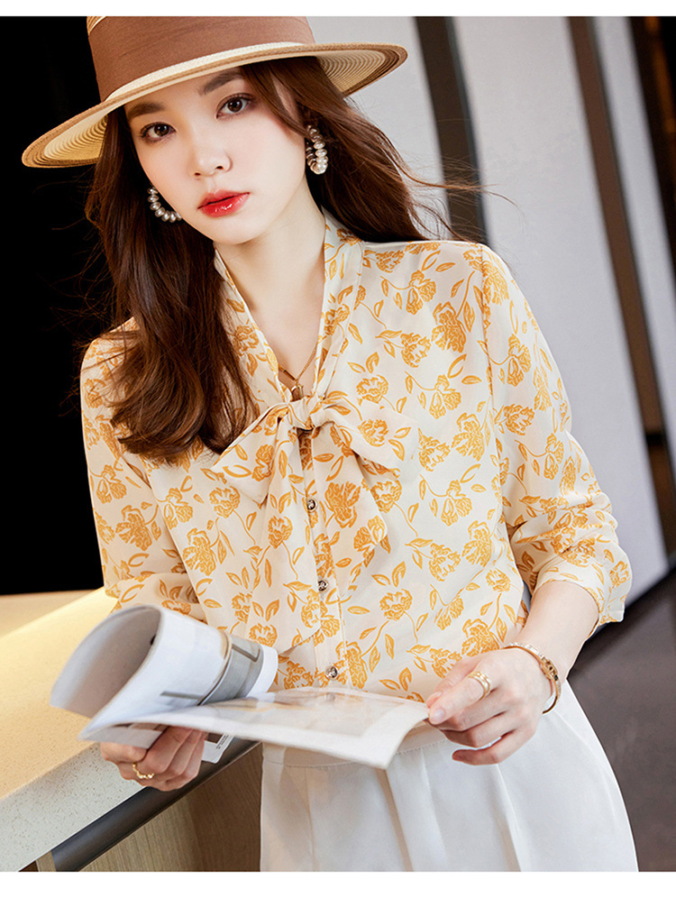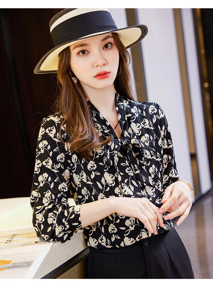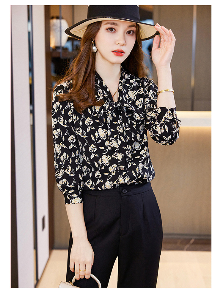 가을 2024 새로운 패션 활 긴팔 셔츠 여성용 새틴 인쇄 무거운 세련된 리본 탑 올 매치스토어 가기