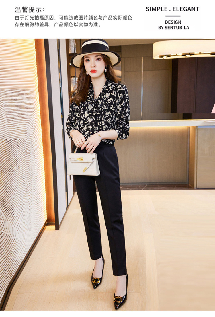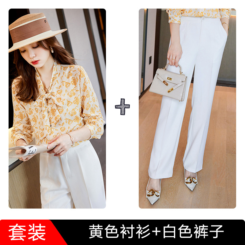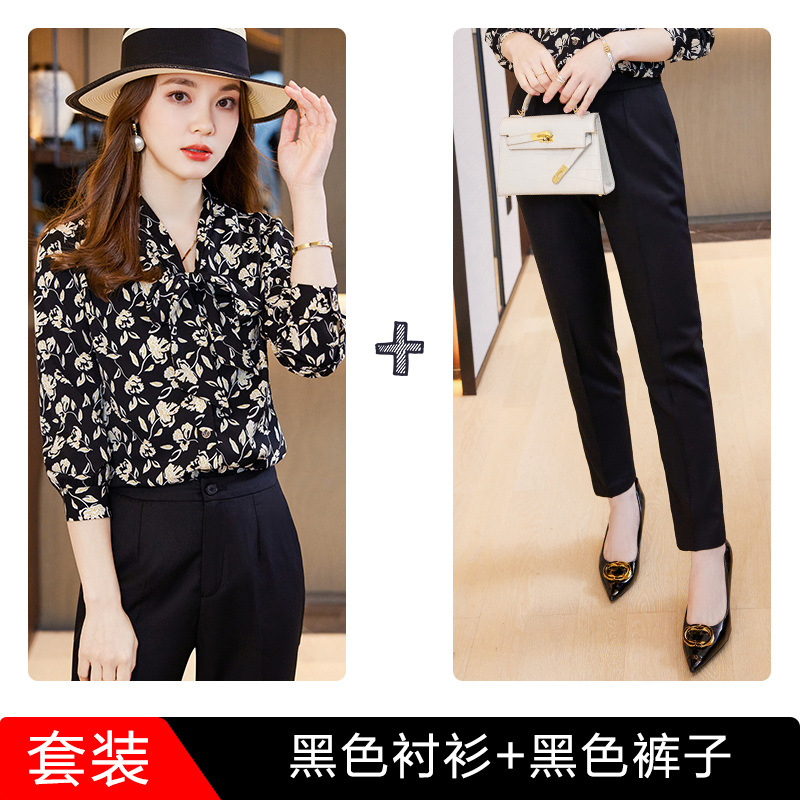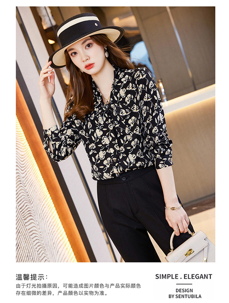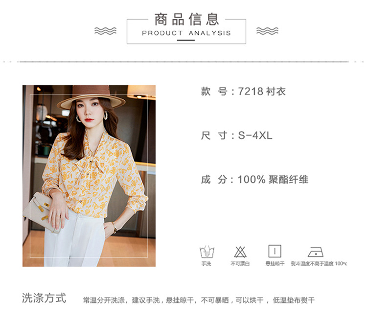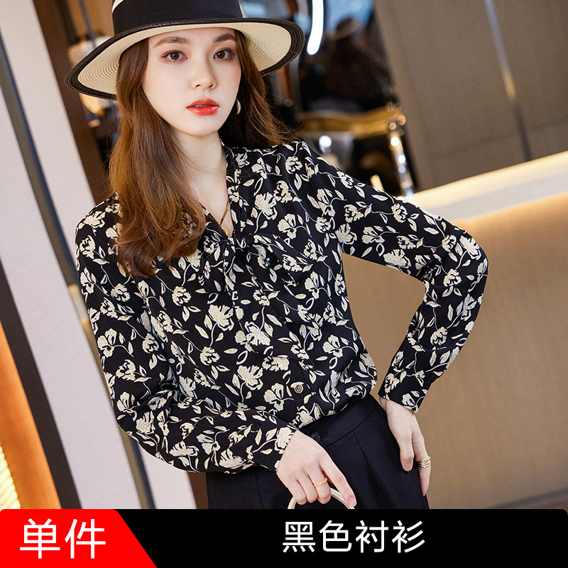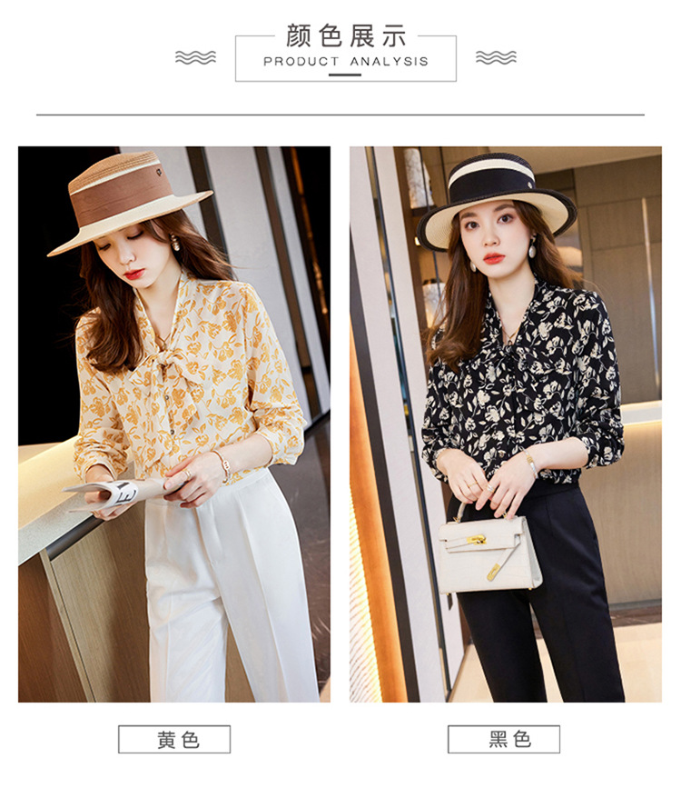 가을 2024 새로운 패션 활 긴팔 셔츠 여성용 새틴 인쇄 무거운 세련된 리본 탑 올 매치스토어 가기