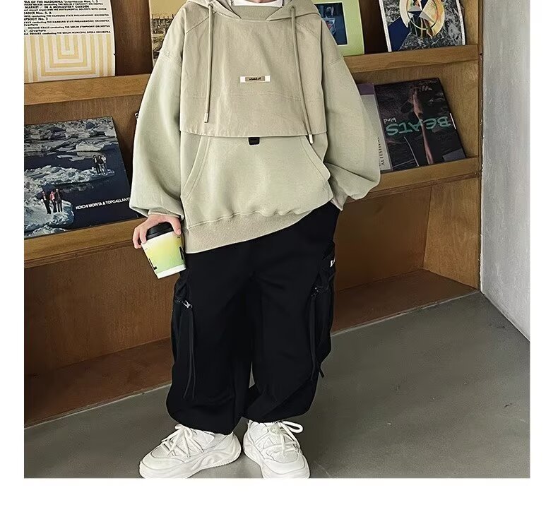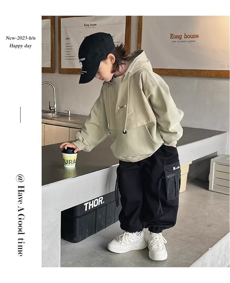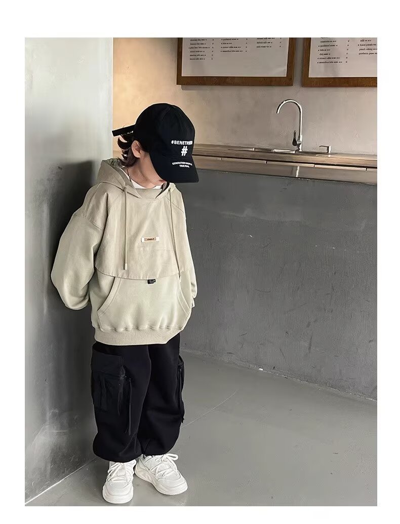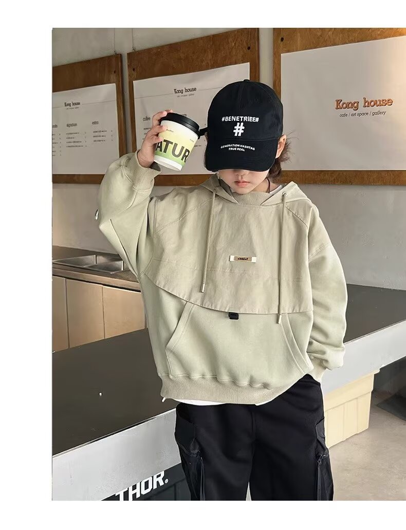 소년의 편지 후드 스웨터 2024 새로운 어린이 서양식 코트 탑 어린이 내복 아기의 가을 패션스토어 가기
