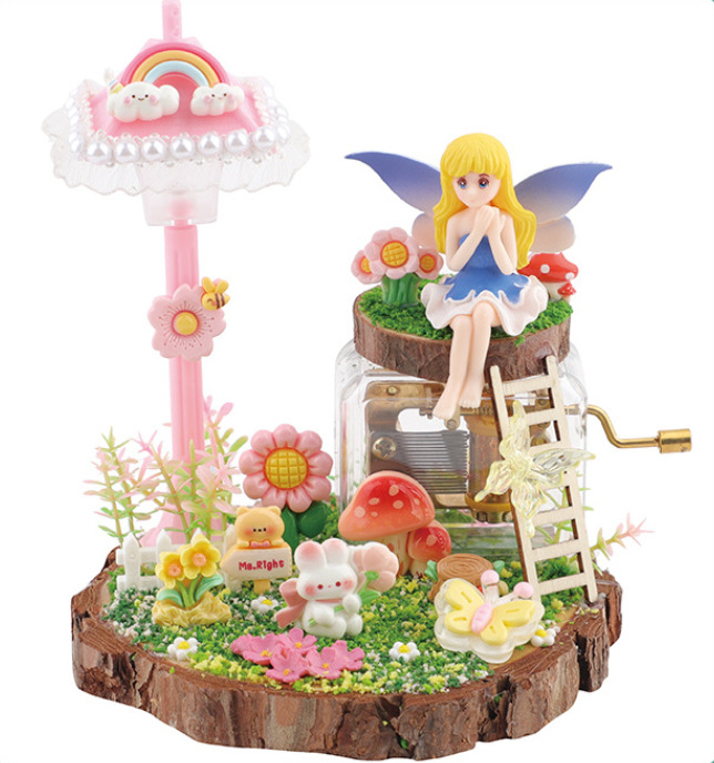 어린이 DIY 창조 손으로 크랭크 음악 상자 작은 테이블 램프 야간 조명 동화 음악 숲 판타지 숲 음악 테이블스토어 가기
