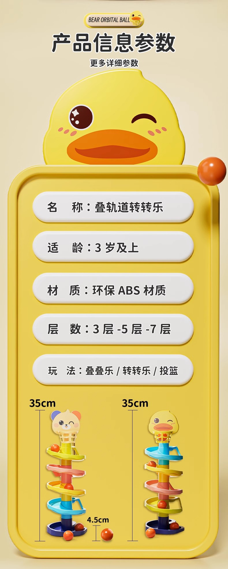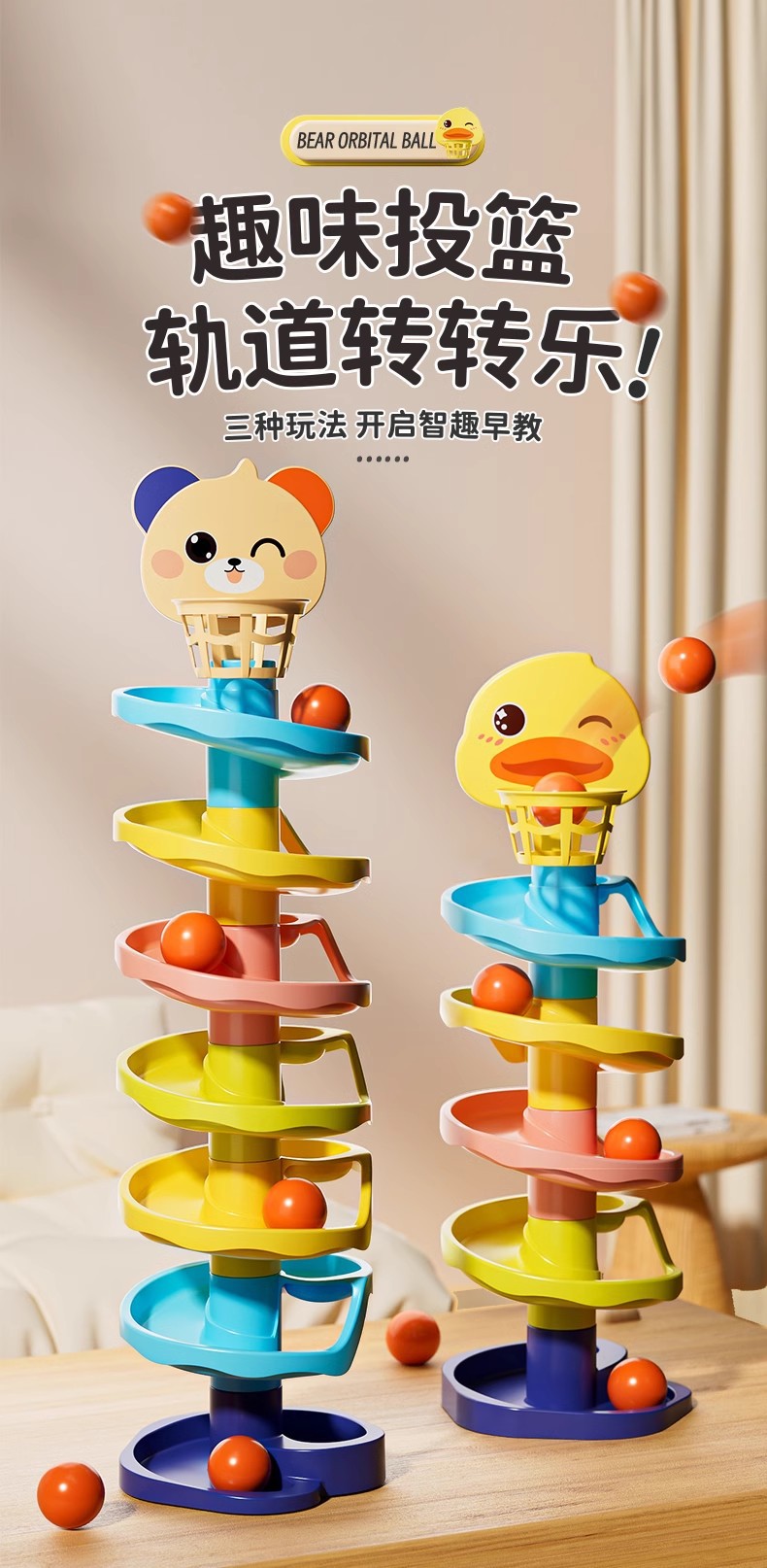 • 세 개의 층❤작고 귀여운 곰 트랙 회전 재미⭐공 1개 포함