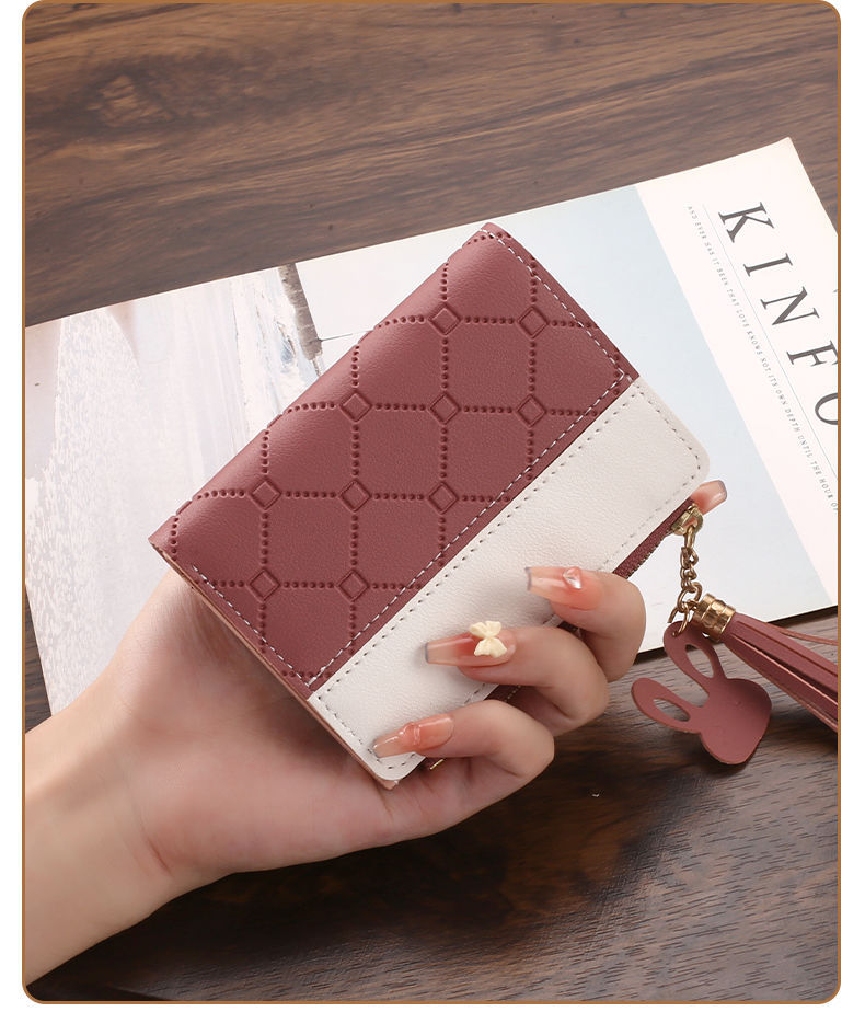 새 한국식 지갑 여자 쇼트 올매치 학생 지갑 여자 카드 가방 2 배 지퍼 동전 지갑