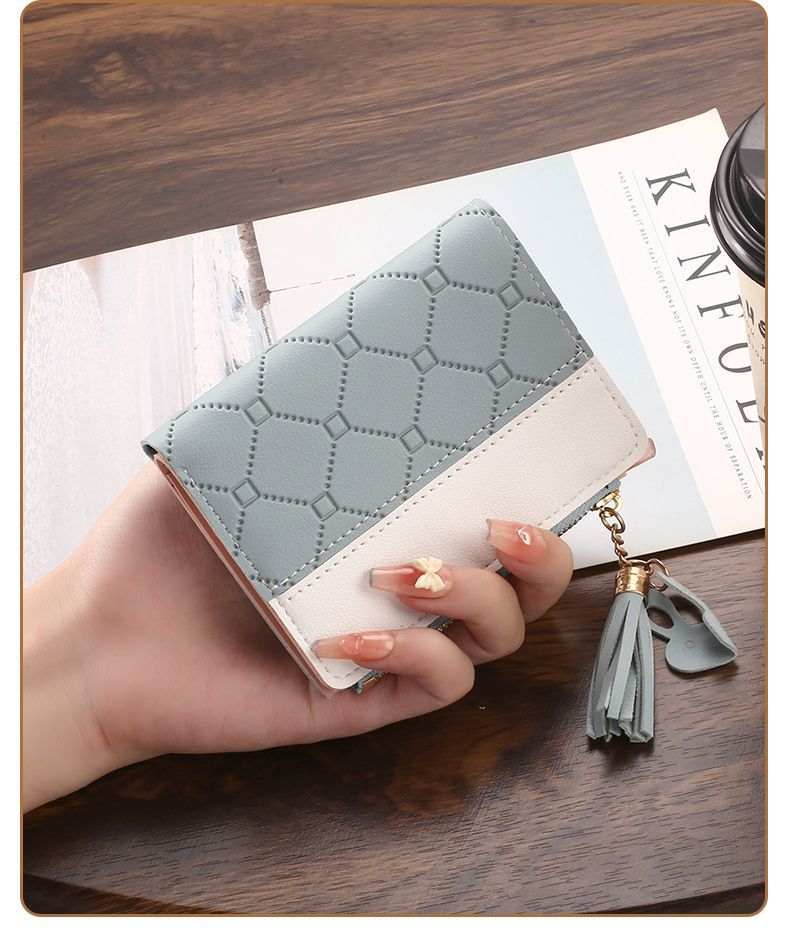 새 한국식 지갑 여자 쇼트 올매치 학생 지갑 여자 카드 가방 2 배 지퍼 동전 지갑스토어 가기