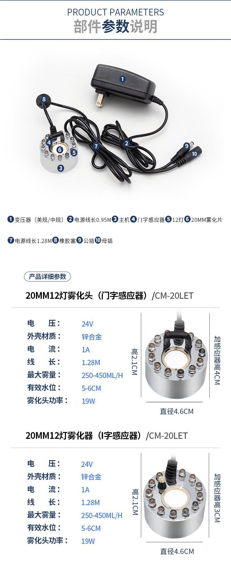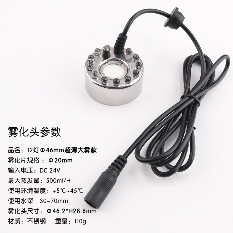 12 개의 조명 20MM 안개 메이커 안개 볼륨 초음파 분무기 분무 헤드 록 분재 어항 조경 가습