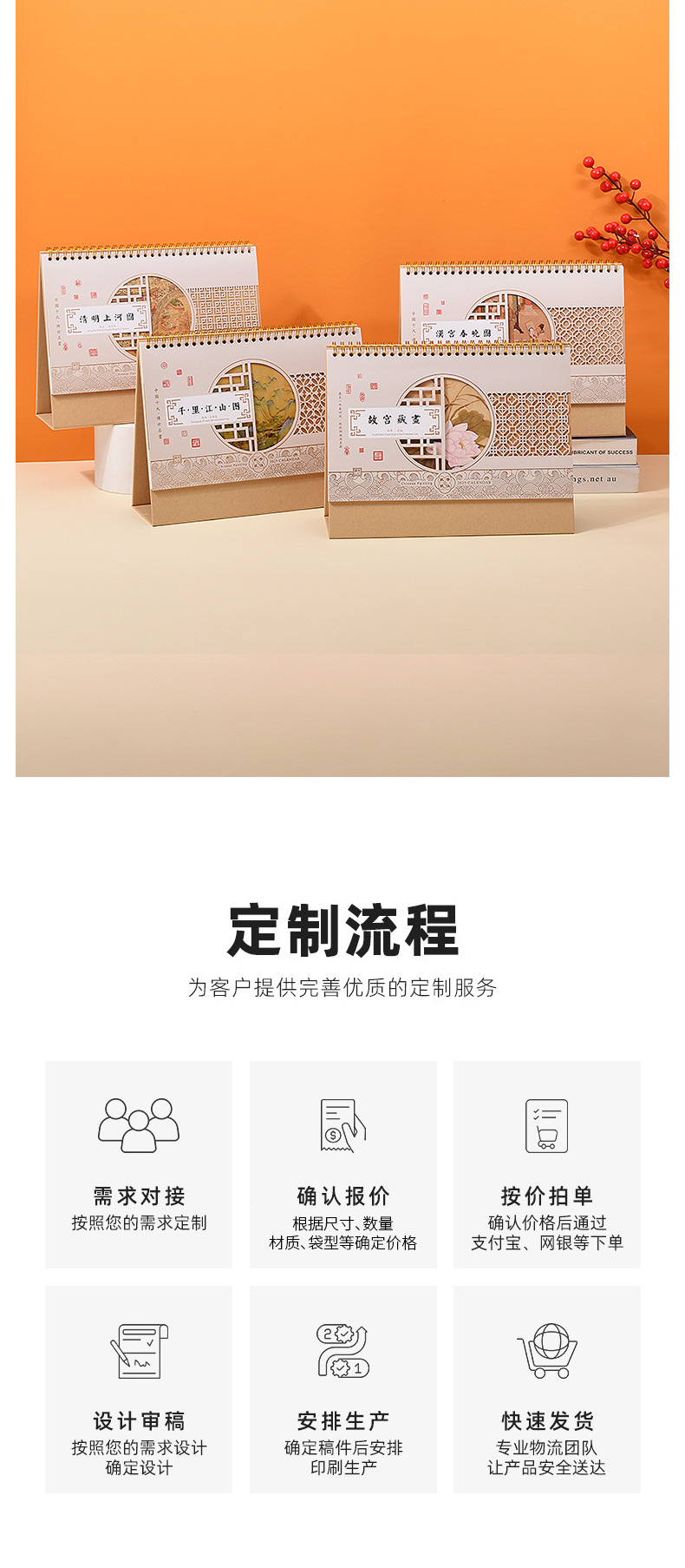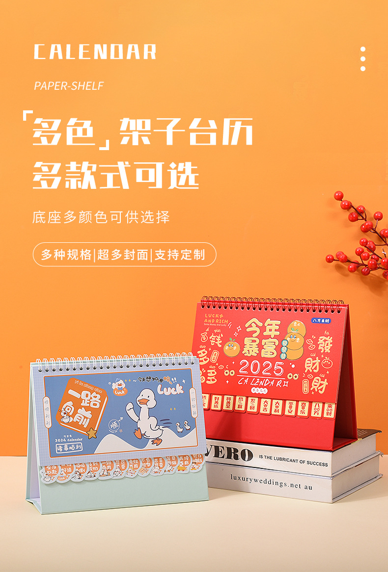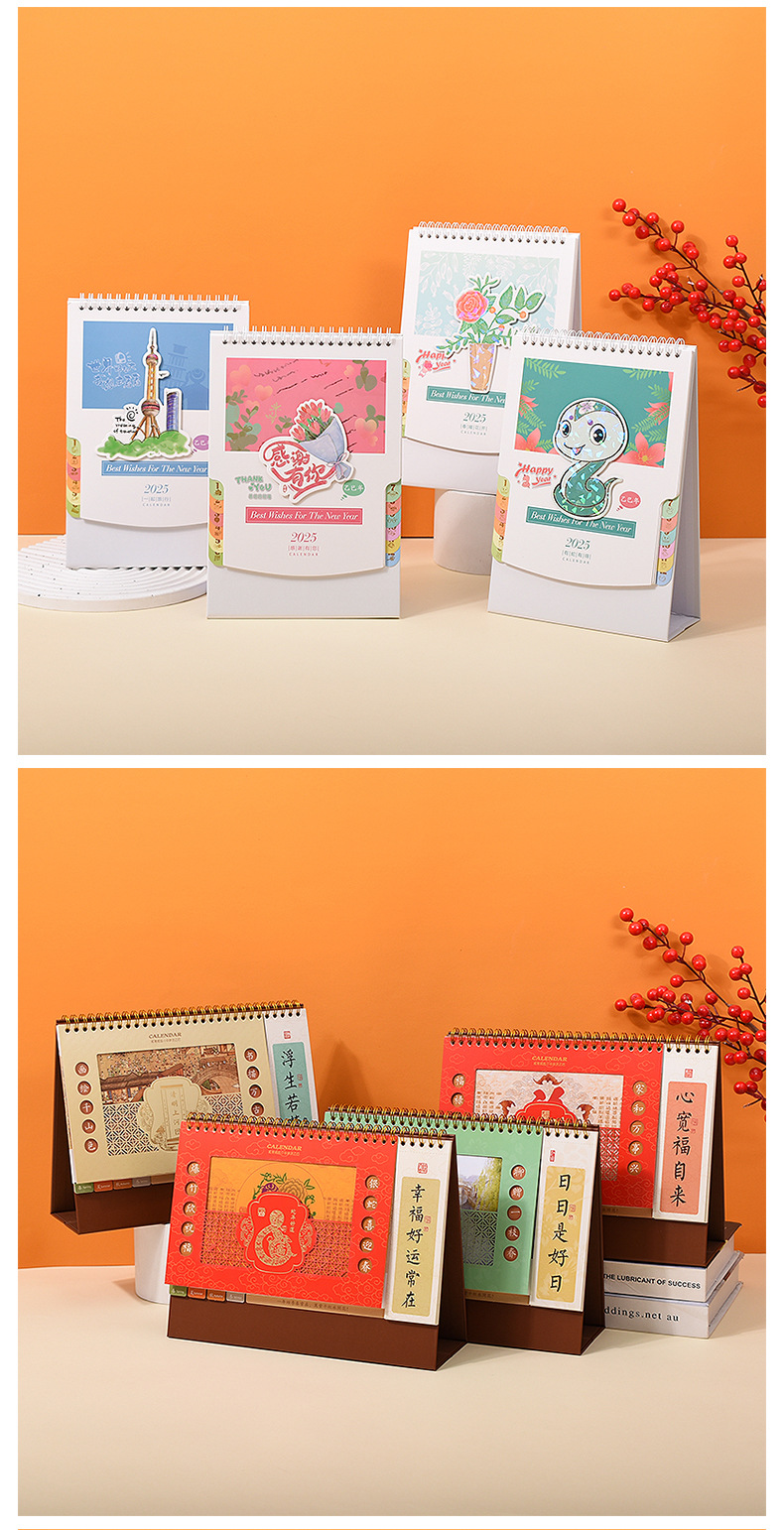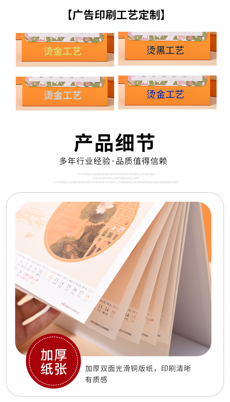 나무 프레임 책상 달력 스페셜 에디션 맞춤형 한국 버전의 대외 무역 달력 새로운 페이지 터닝 기업 광고 데스크 달력 차가운 다림질 프로세스 월간 달력