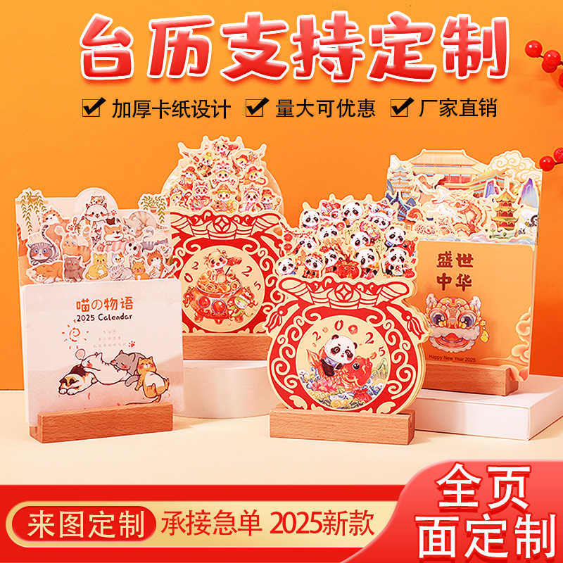 나무 프레임 책상 달력 스페셜 에디션 맞춤형 한국 버전의 대외 무역 달력 새로운 페이지 터닝 기업 광고 데스크 달력 차가운 다림질 프로세스 월간 달력스토어 가기