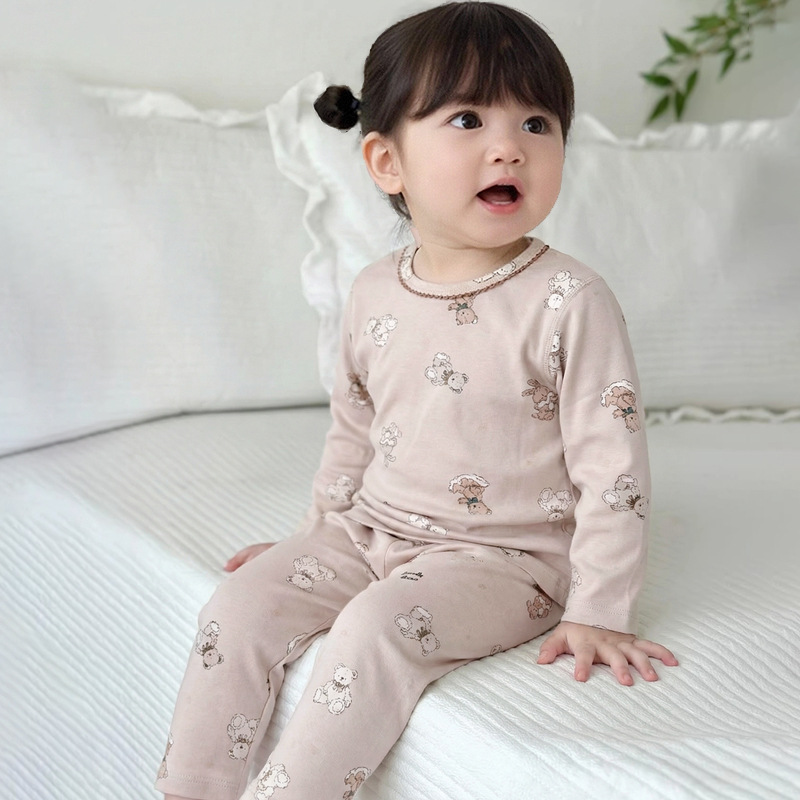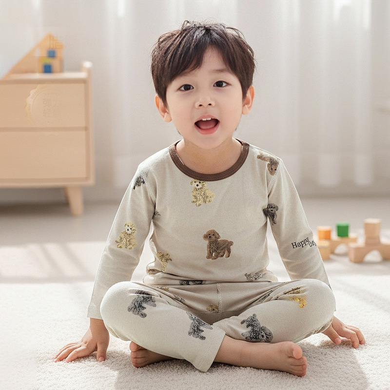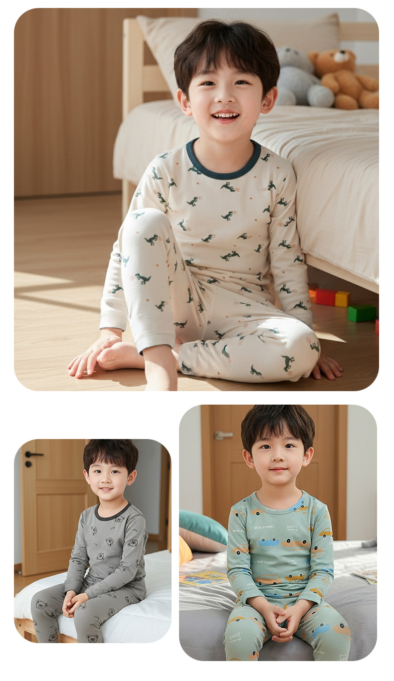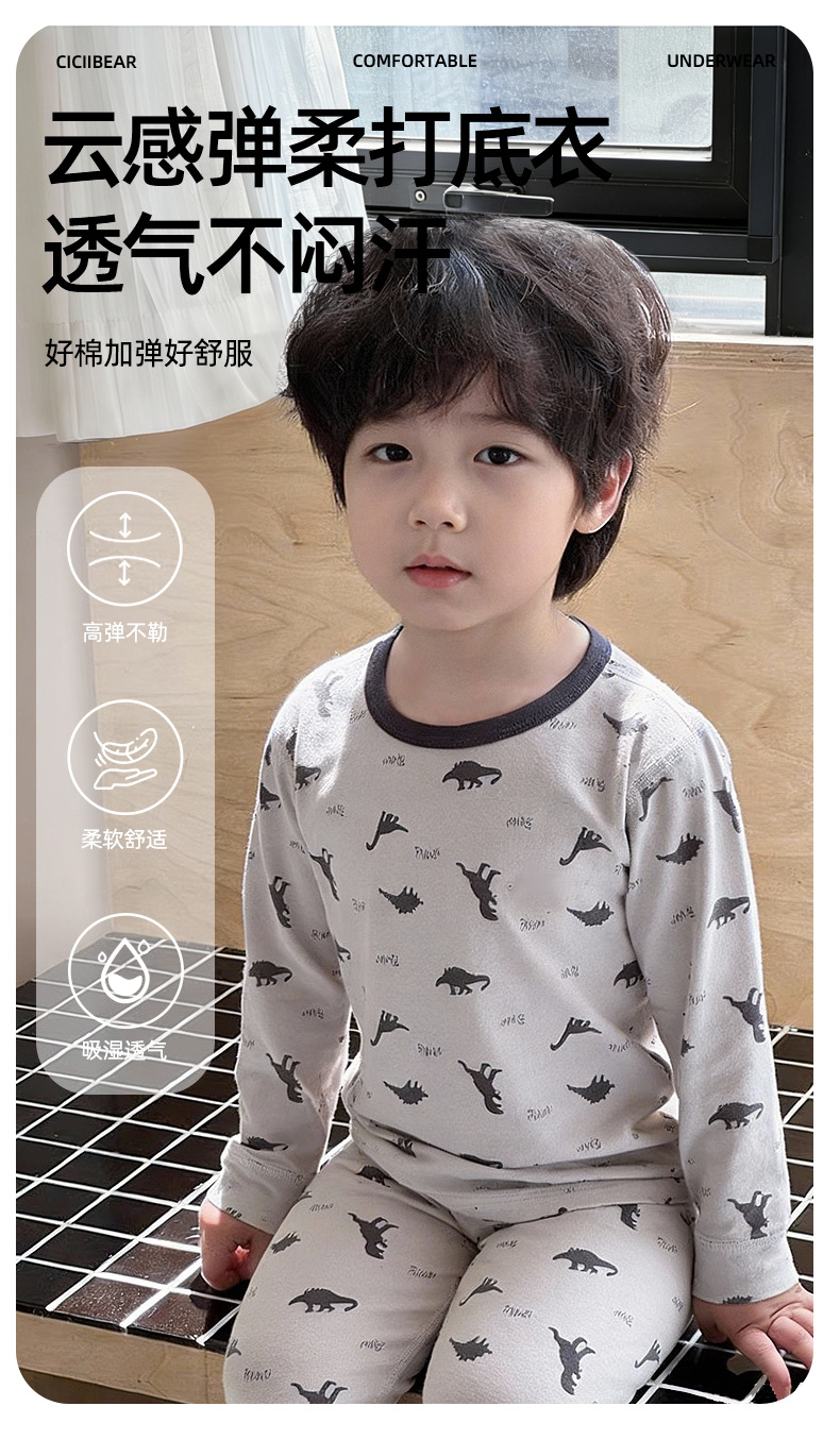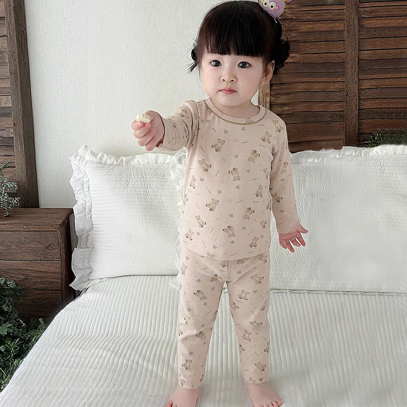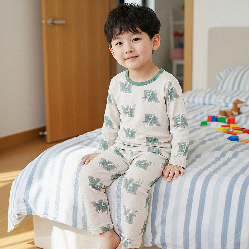 봄철 아동 속옷 세트 A급 아기 라이크라 세트 긴팔 라운드넥 남아 여아 가을옷 가을바지 홈웨어스토어 가기