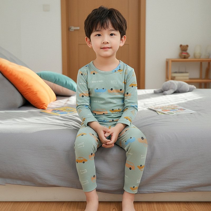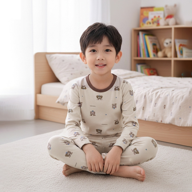 봄철 아동 속옷 세트 A급 아기 라이크라 세트 긴팔 라운드넥 남아 여아 가을옷 가을바지 홈웨어