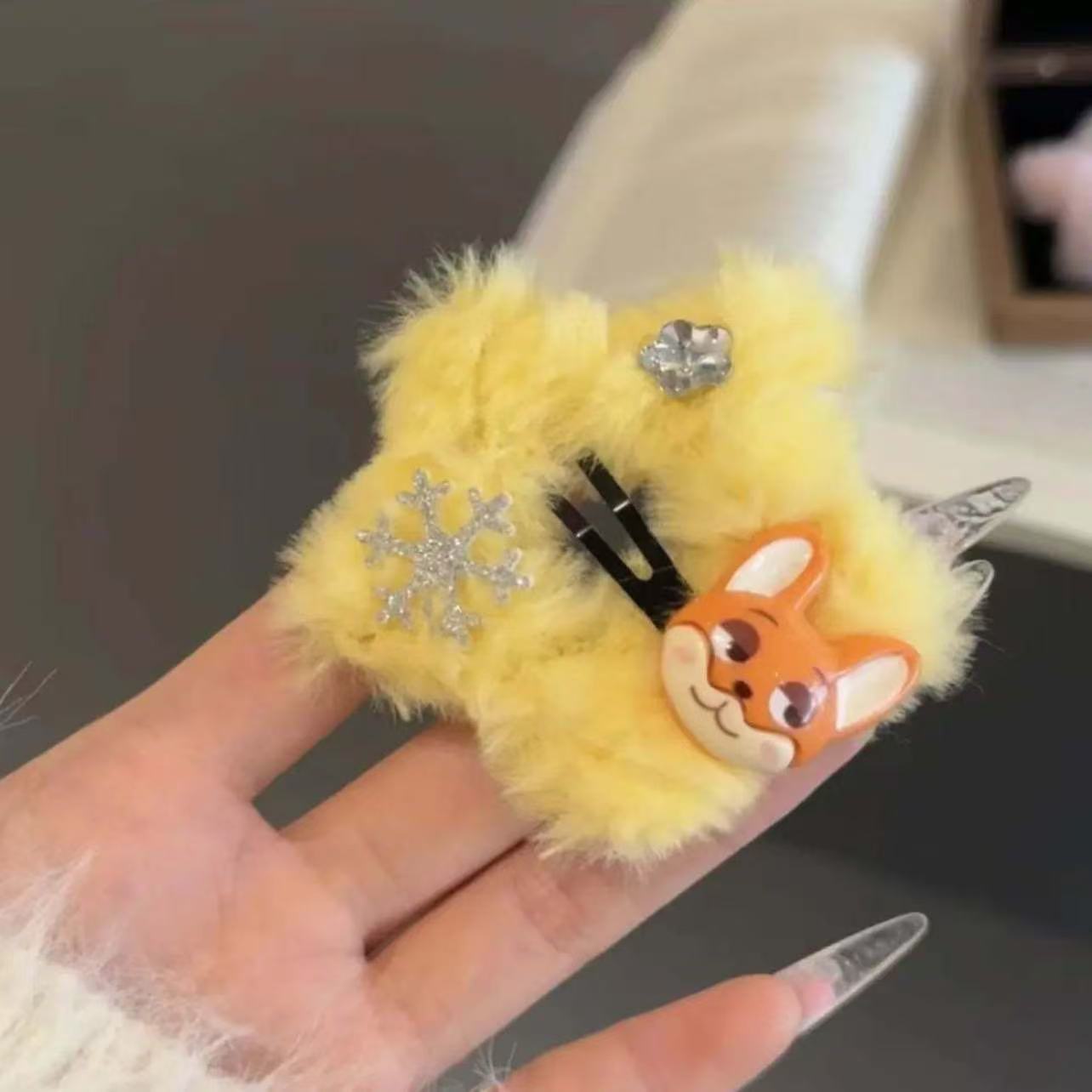 • 7125 털실 별 모양 머리핀 - 큐빅 눈꽃 노란색 여우