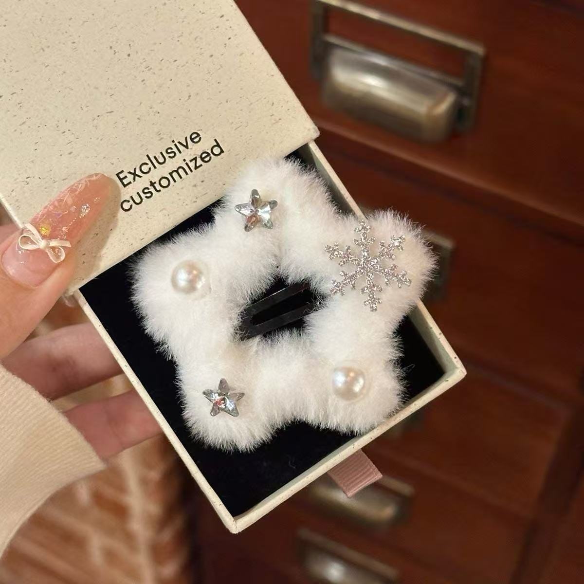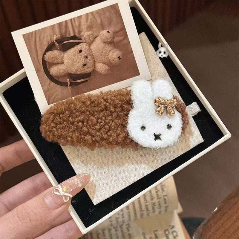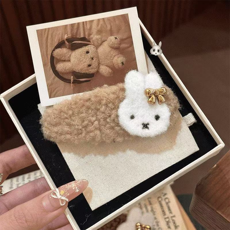 • 7125 털실 감은 별 모양 헤어 클립 - 베이지 토끼