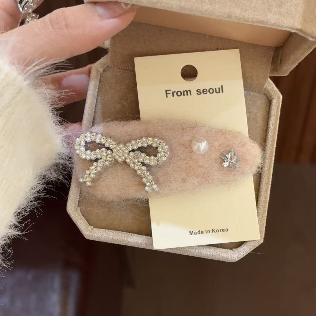 • 7240 보타이 모직 비즈 다이아몬드 헤어핀-핑크