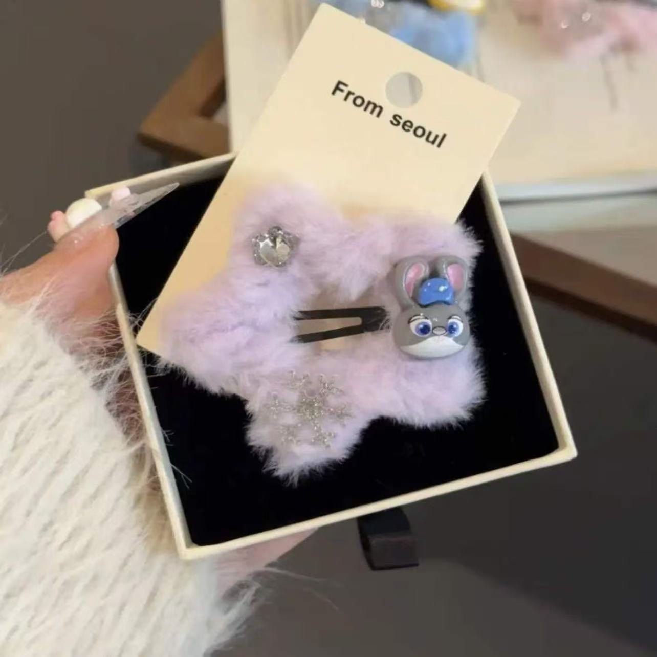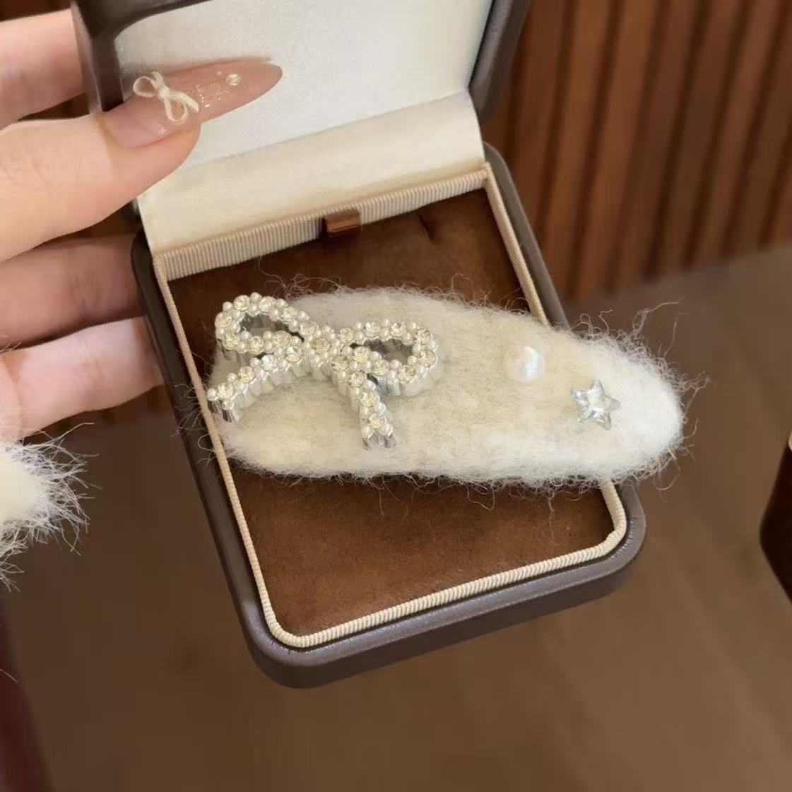 • 7125 털실 별 모양 머리핀 - 큐빅 눈꽃 보라 토끼