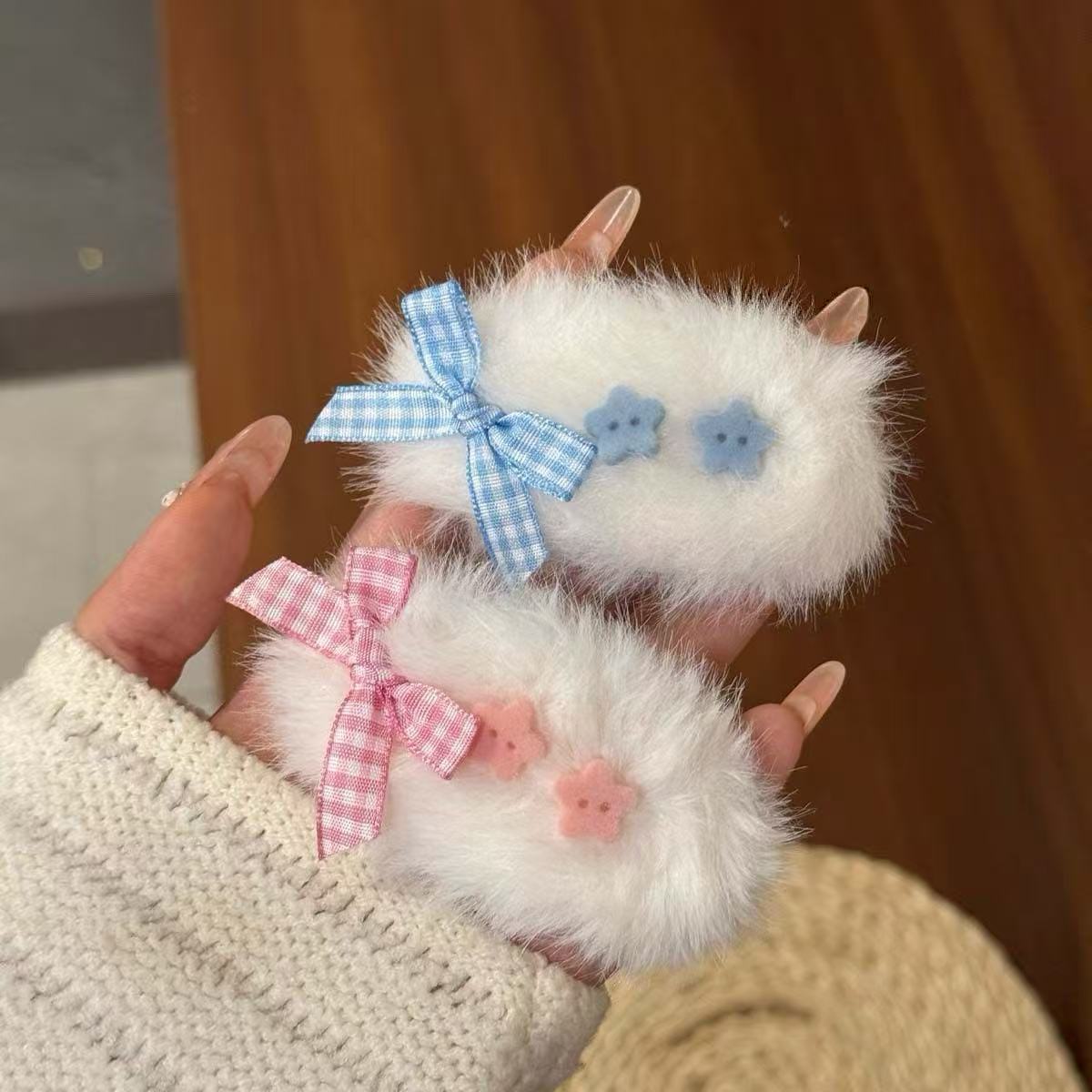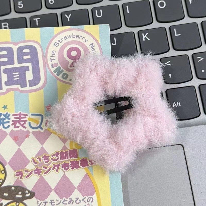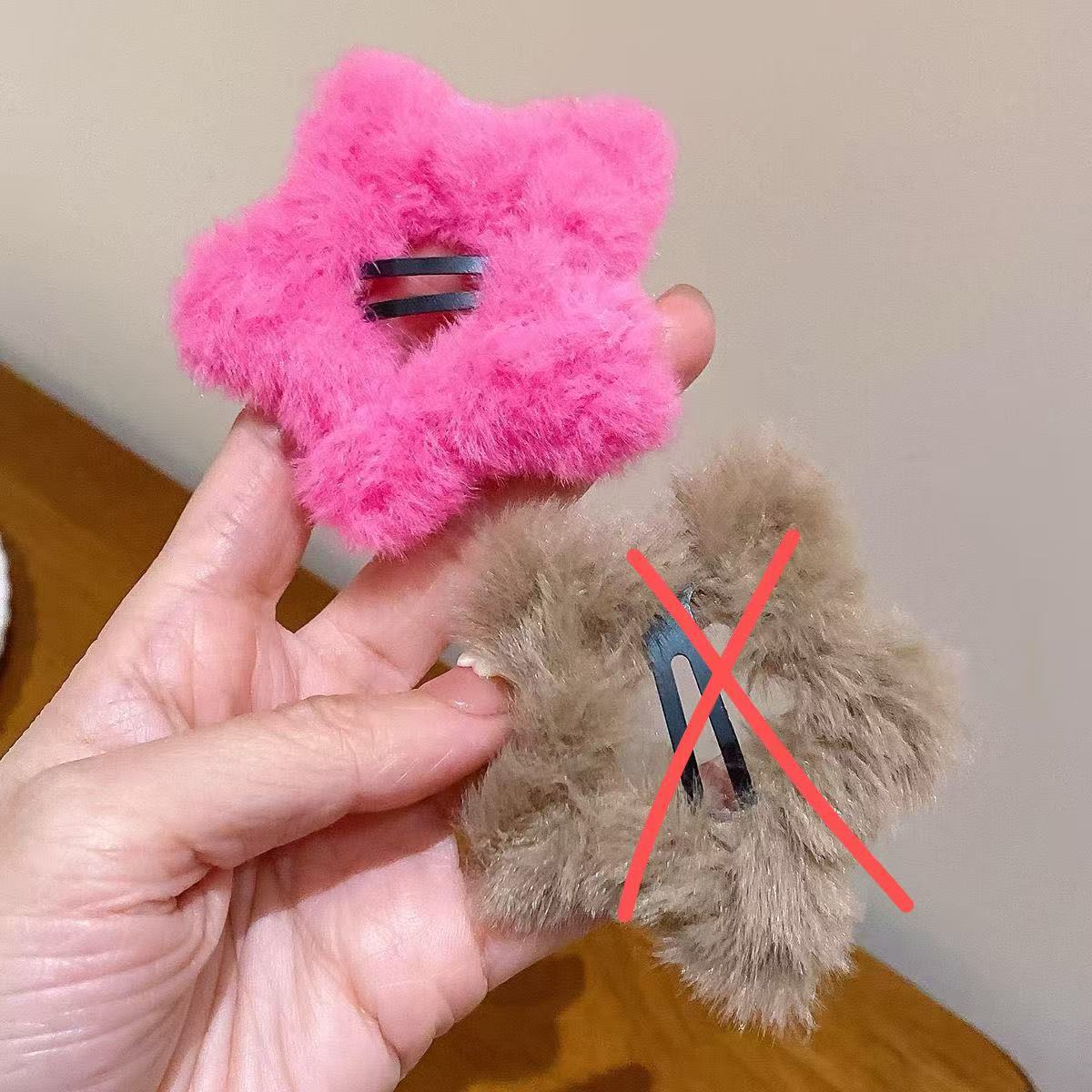 • 5572 털 복슬 복슬 타원형 헤어 클립 - 더블 스타 핑크