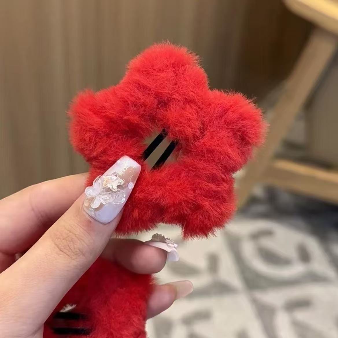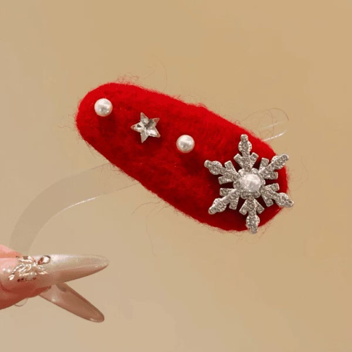 • 7239 레드 모직 눈송이 머리핀