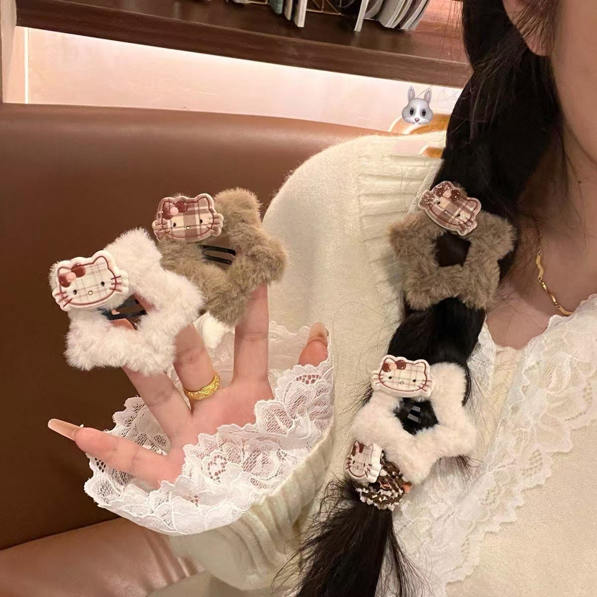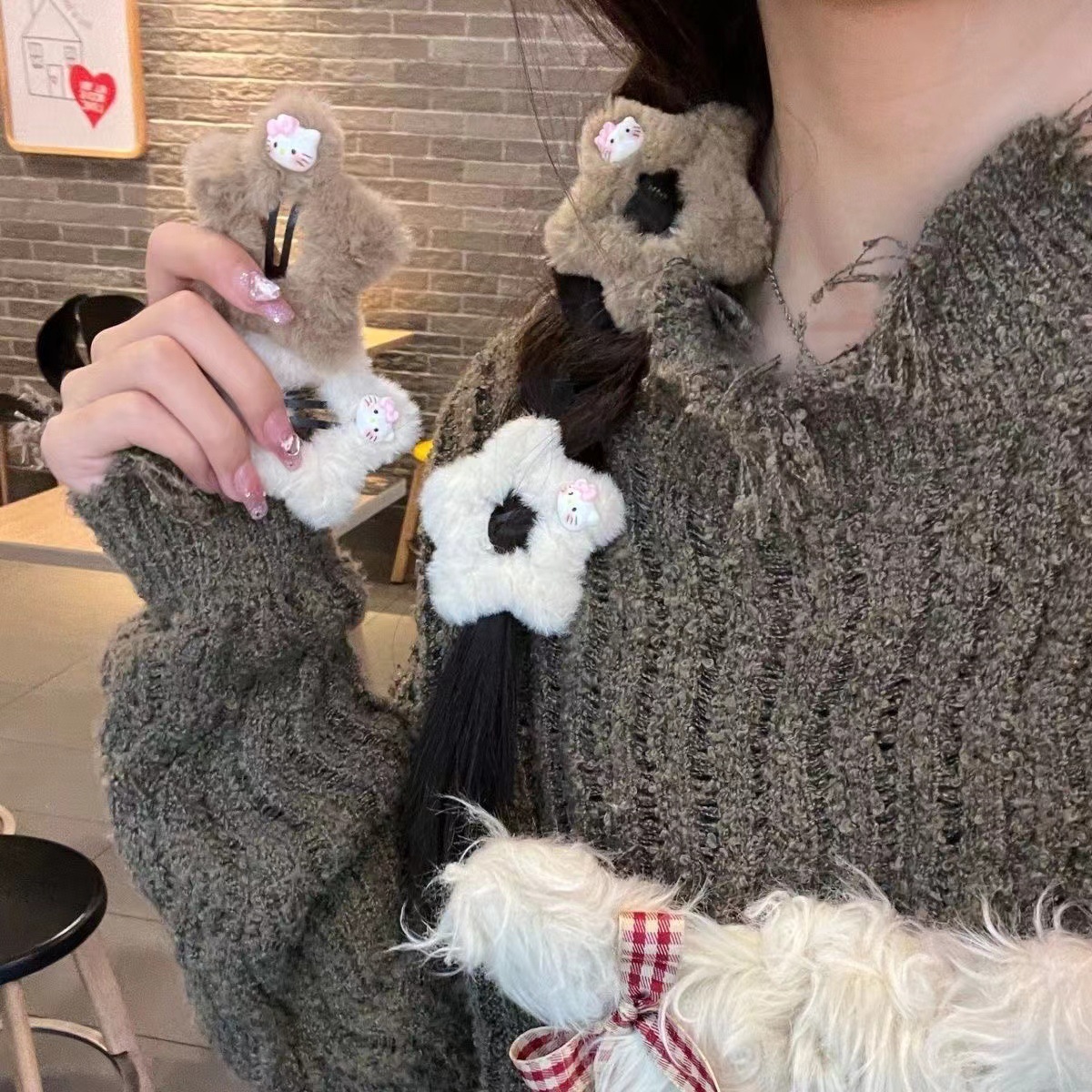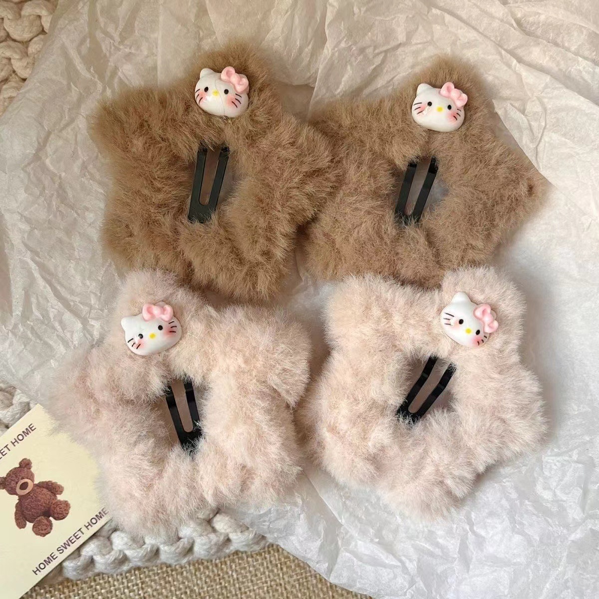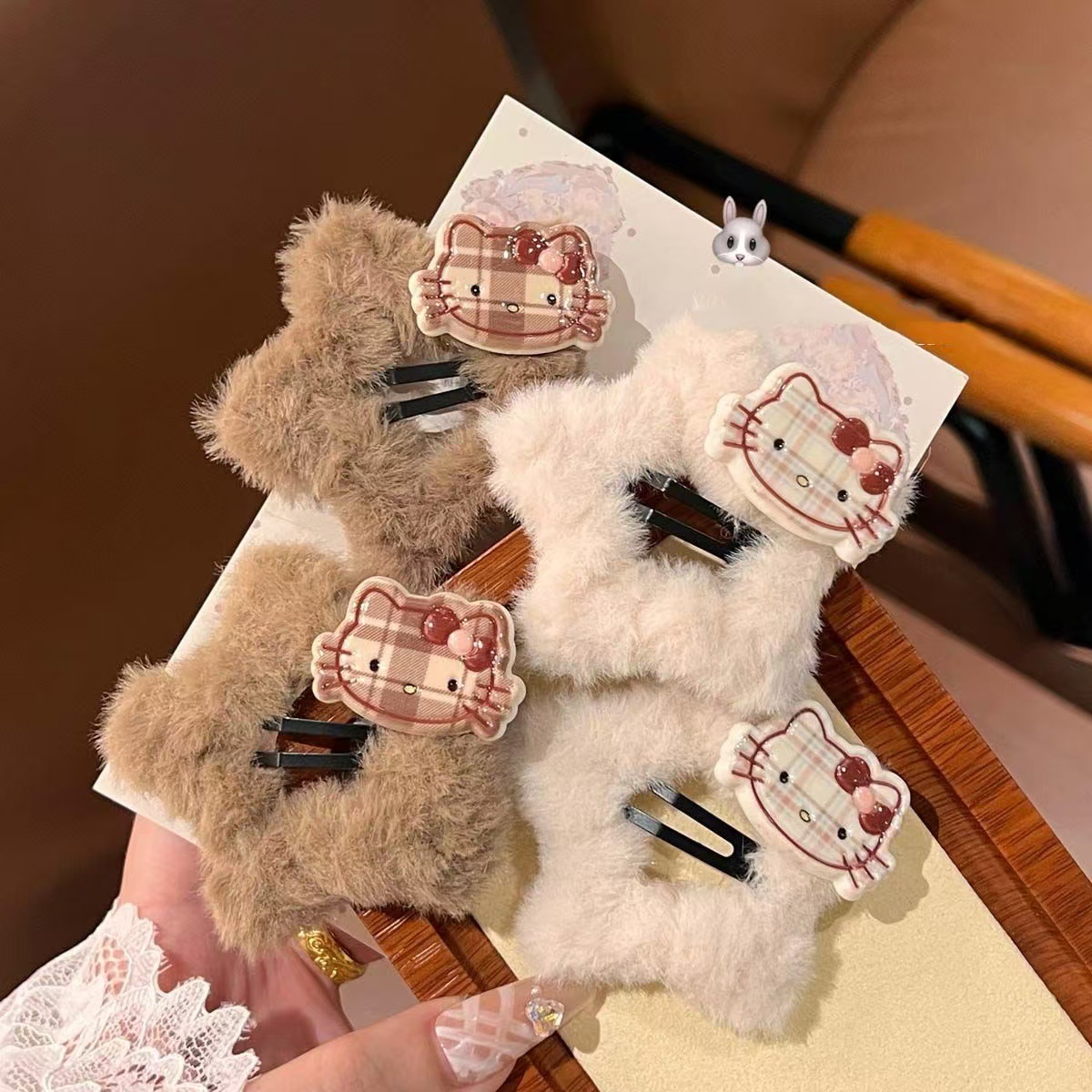 • 5268 플러시 KT 스타 헤어핀-쿠키캣 커피 컬러