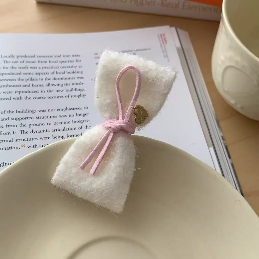 • 5565 브러쉬드 리본 헤어 클립 - 화이트