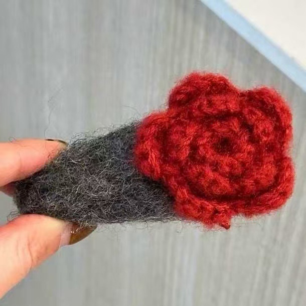 • 7244 그레이 울 헤어핀-빅 레드 플라워