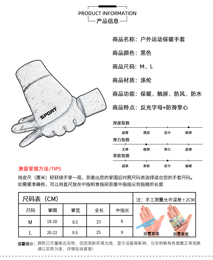 따뜻한 장갑 가을과 겨울 야외 스포츠 사이클링 방풍 방수 미끄럼 방지 터치 스크린 사이클링 장갑