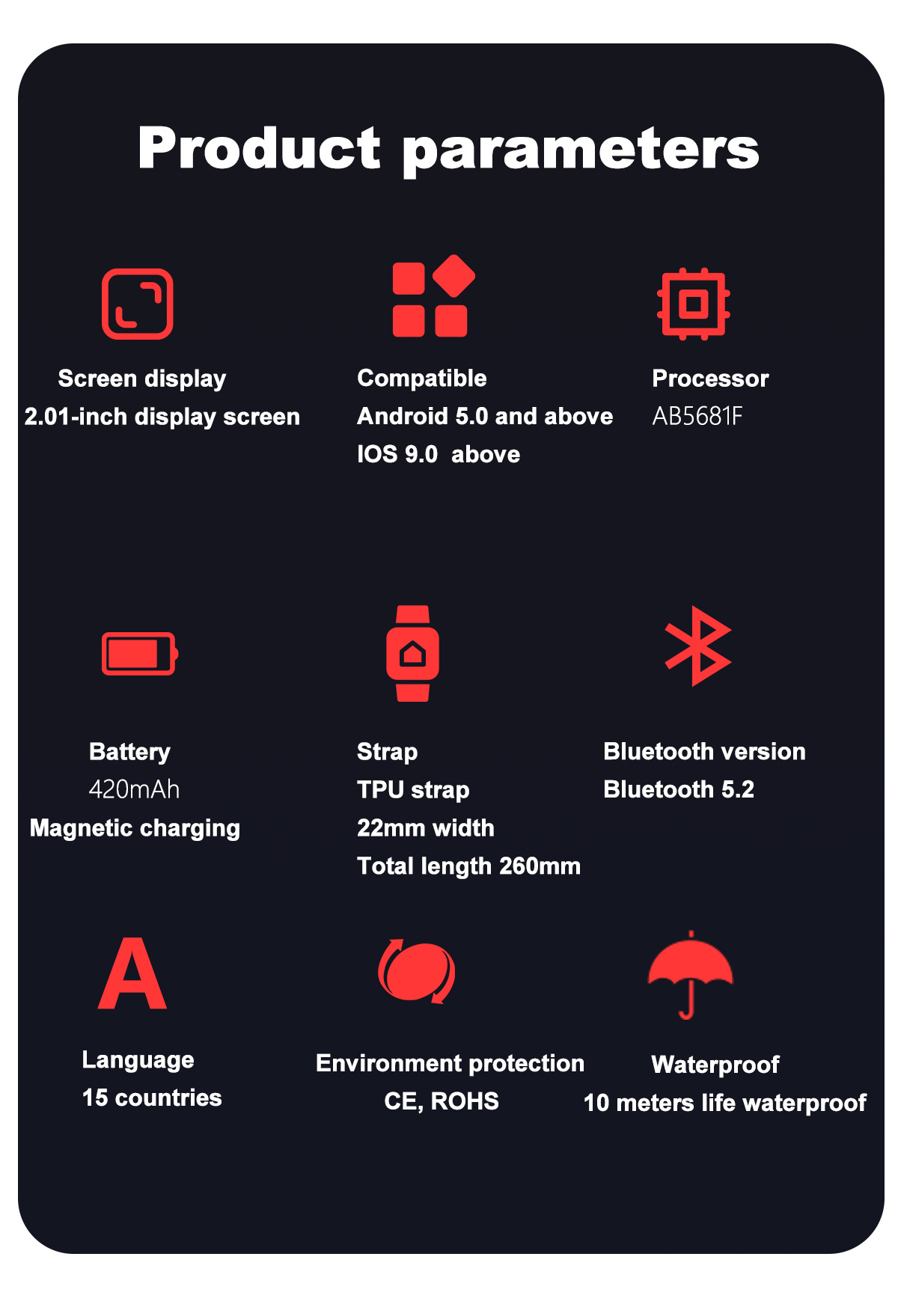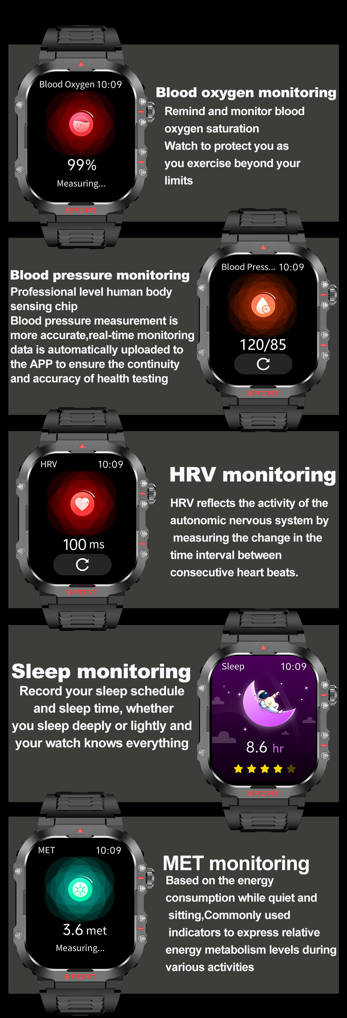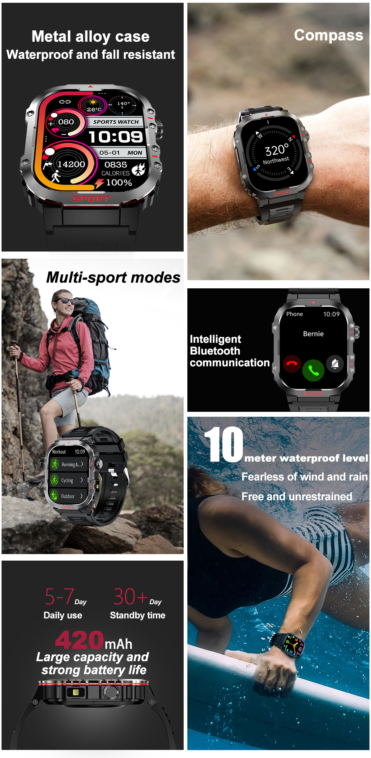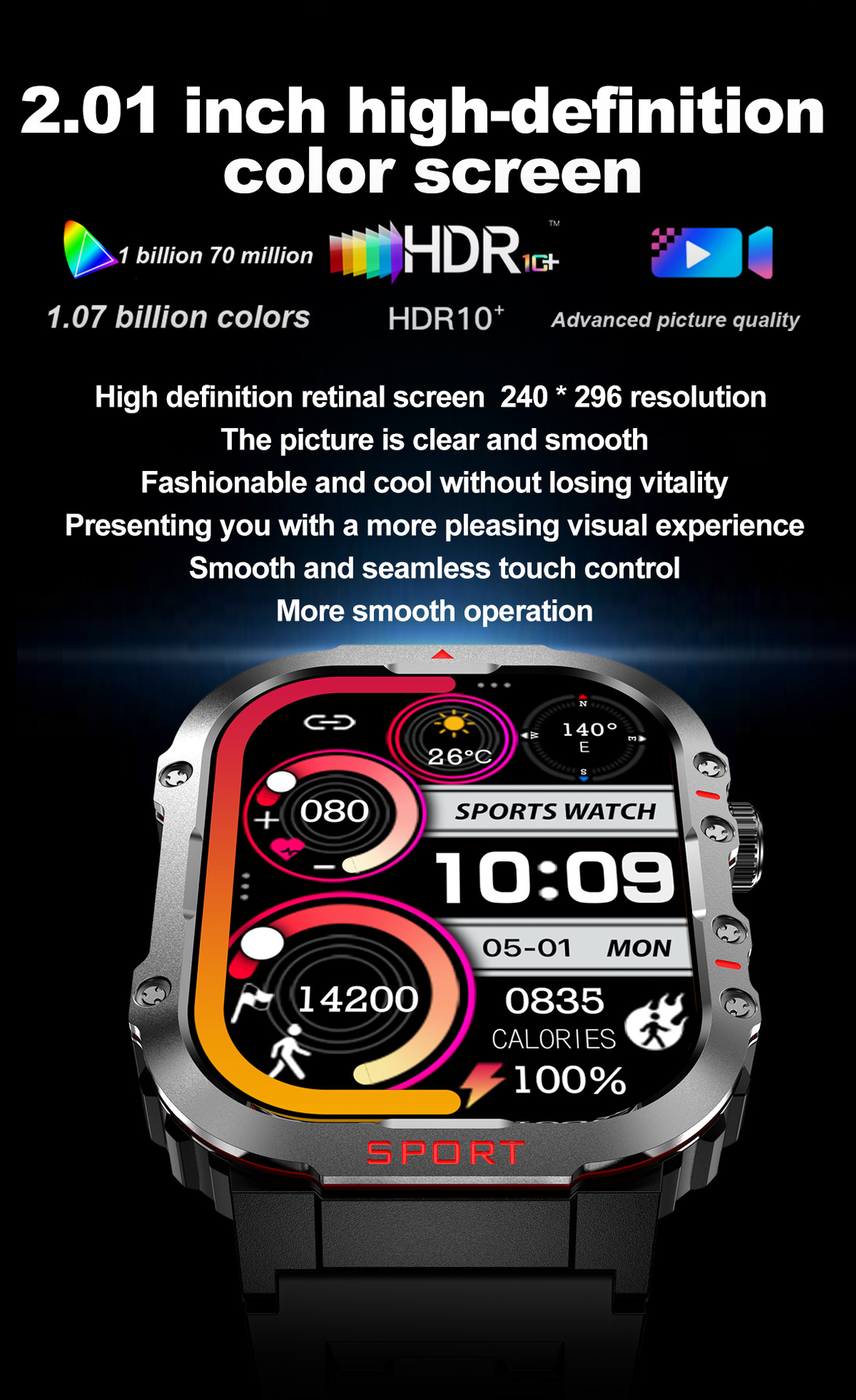 국경을 넘는 G45 스마트워치 LED 시계 나침반 건강 모니터링 IP68 방수 스포츠 스마트워치