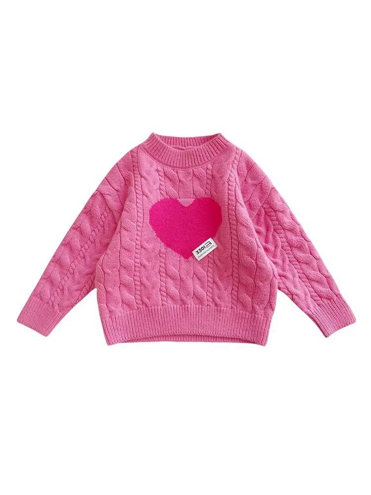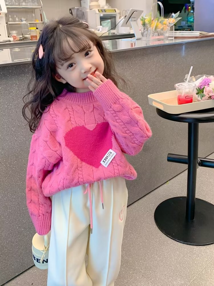 소녀 풀오버 스웨터 2024 새로운 가을과 겨울 한국 아동복 서양식 어린 소녀의 사랑 탑 어린이 니트 스웨터