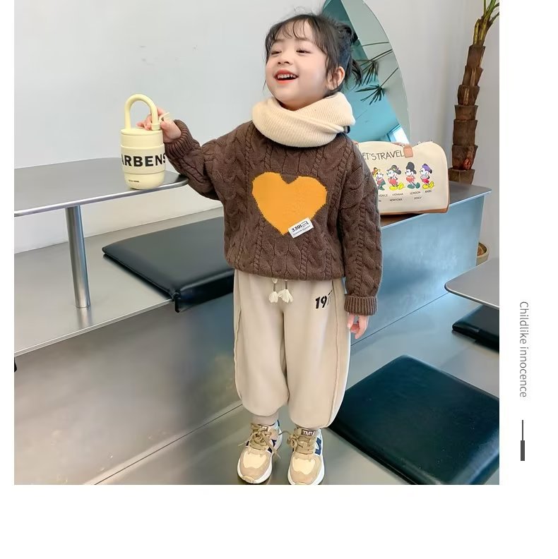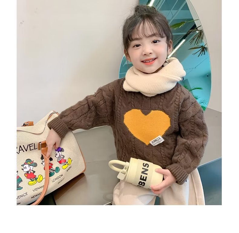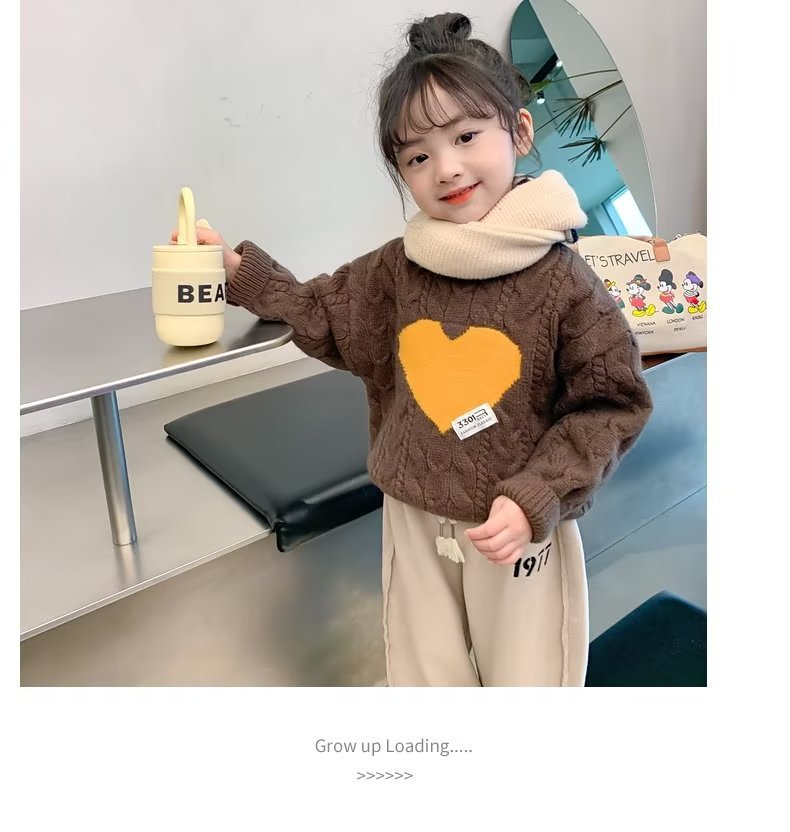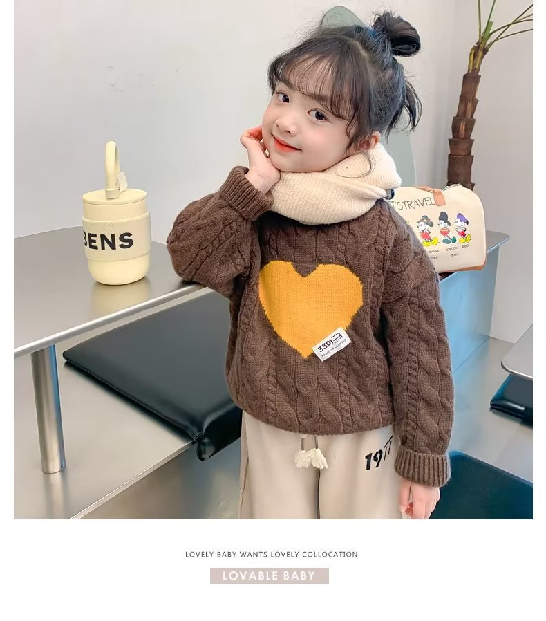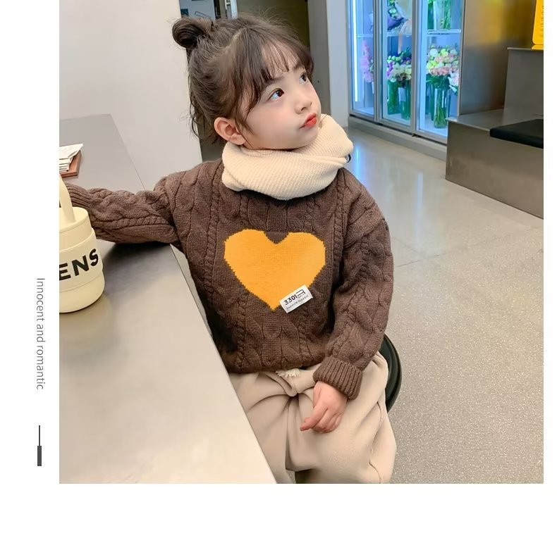 소녀 풀오버 스웨터 2024 새로운 가을과 겨울 한국 아동복 서양식 어린 소녀의 사랑 탑 어린이 니트 스웨터스토어 가기