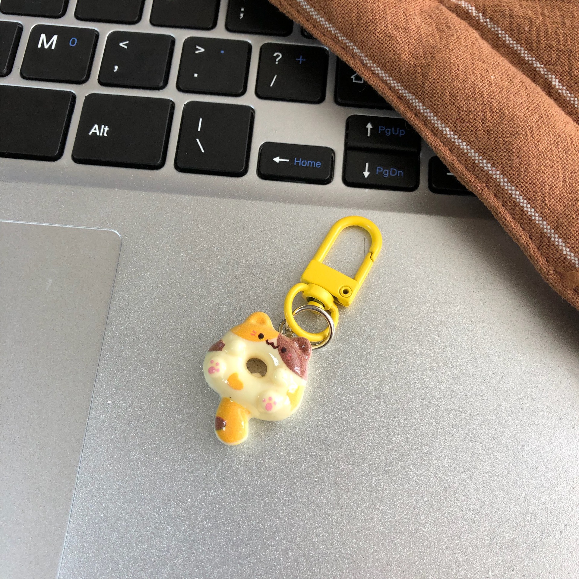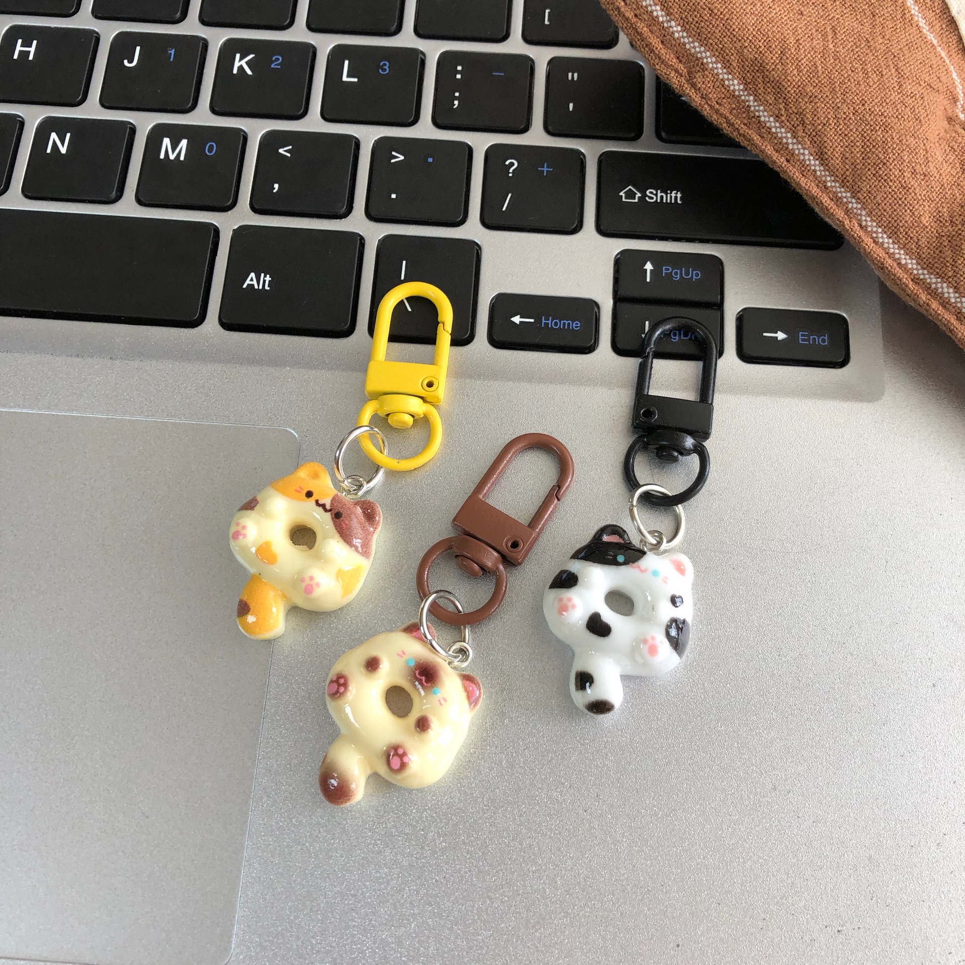 도넛 고양이 키 체인 귀여운 만화 동물 커플 펜던트 학생 학교 가방 간단한 교수형 선물