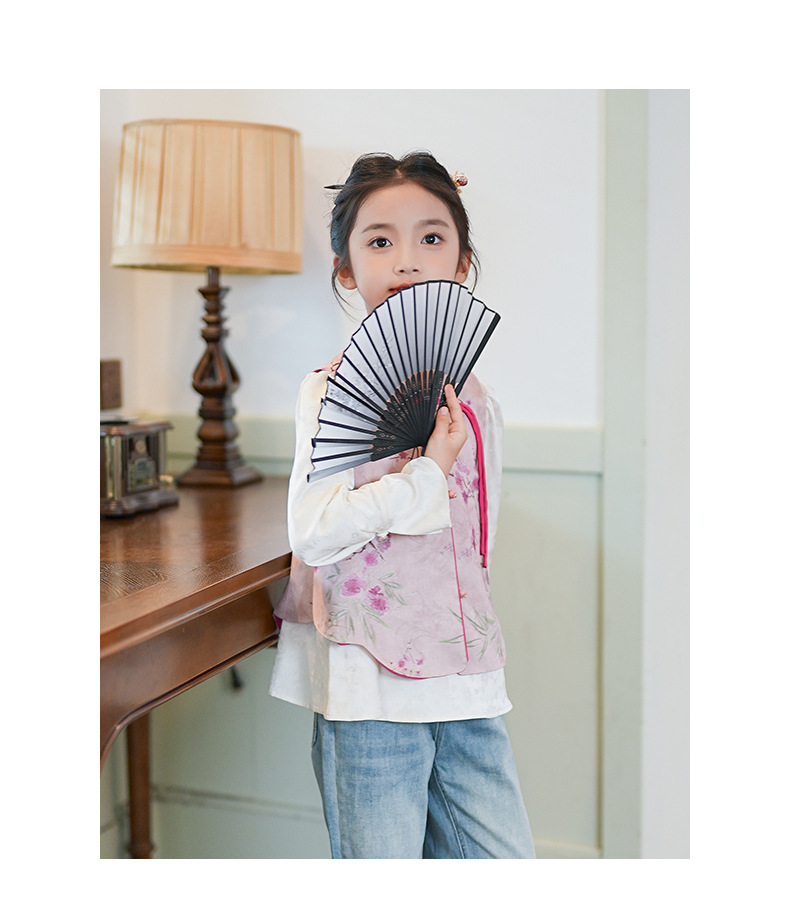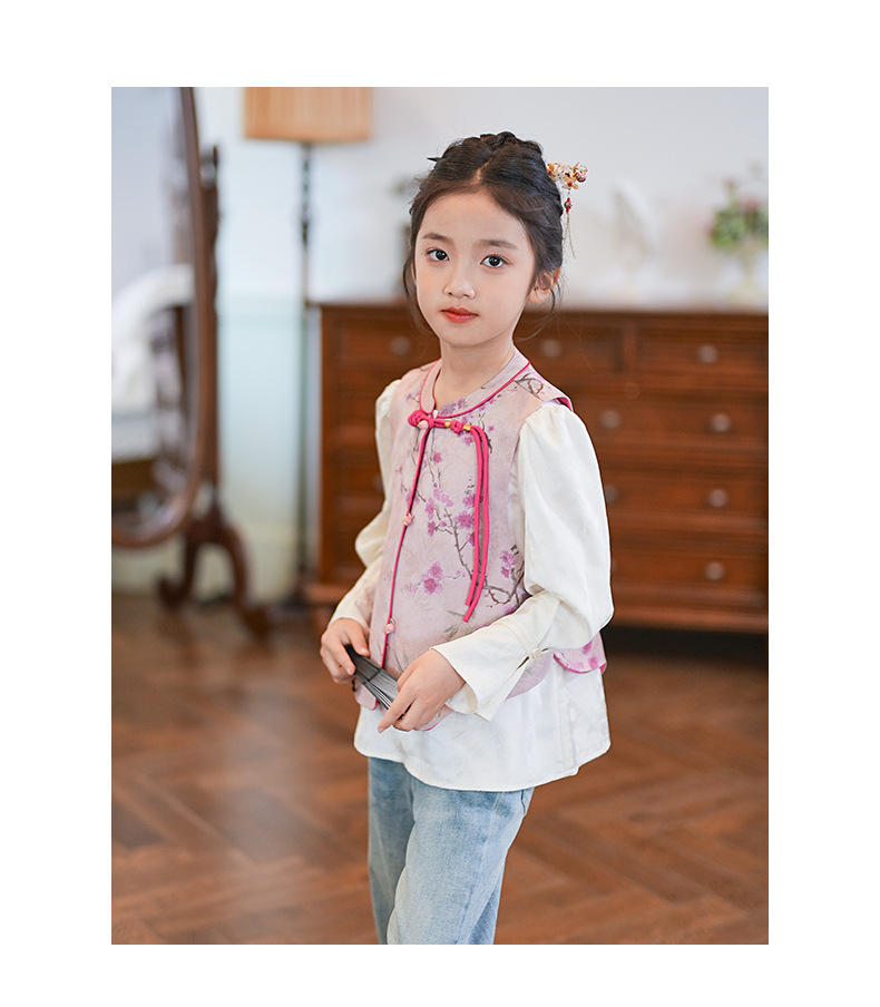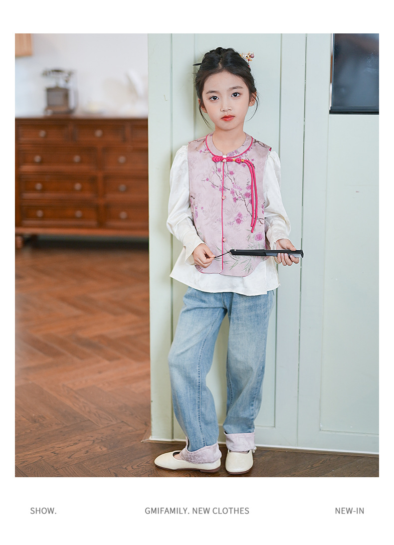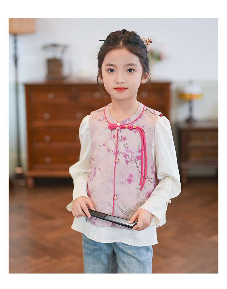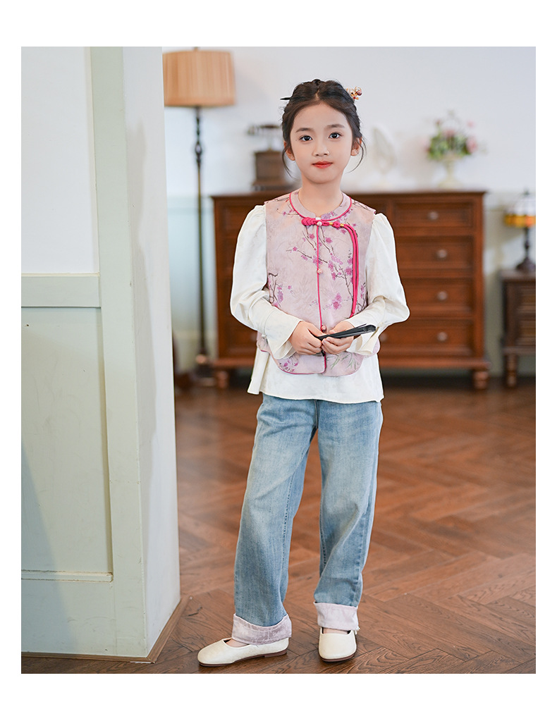 2024 가을 새로운 새로운 중국 스타일 소녀의 어린이 착용 아기 소녀의 국가 스타일 조끼 봄과 가을 서양식 공주 외부 조끼스토어 가기