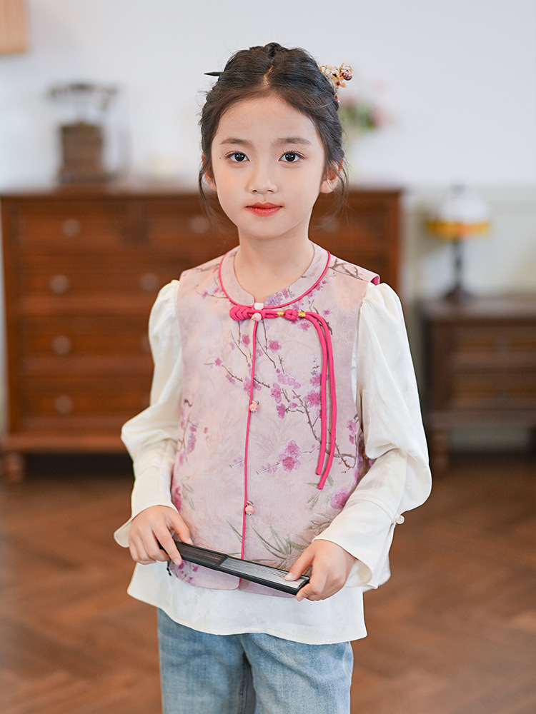 2024 가을 새로운 새로운 중국 스타일 소녀의 어린이 착용 아기 소녀의 국가 스타일 조끼 봄과 가을 서양식 공주 외부 조끼