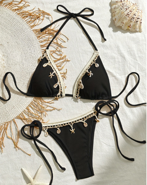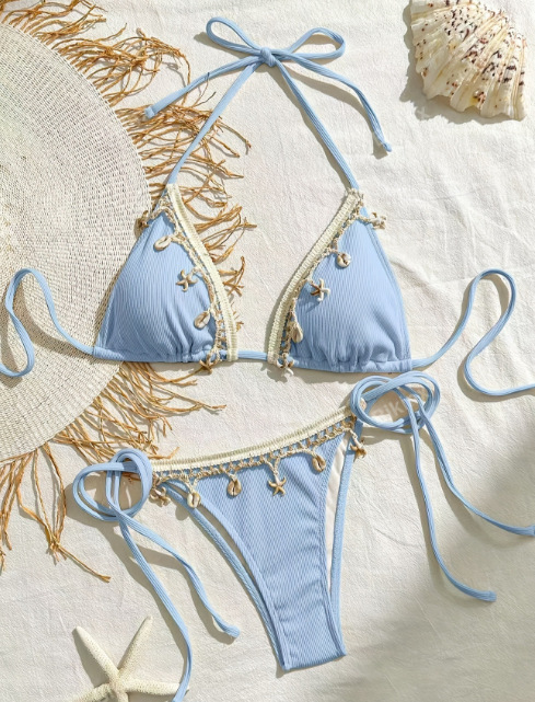 2024新款欧美吊带bikini分体泳衣女款外贸平角运动沙滩比基尼泳装