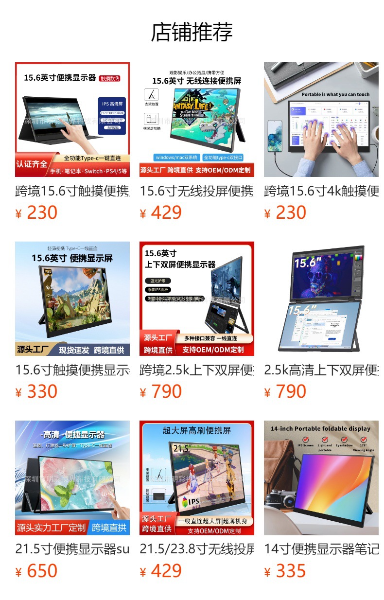 15.6inch 터치형 휴대용 모니터 노트북 스위치 휴대폰 외부 확장 화면 휴대용 화면스토어 가기