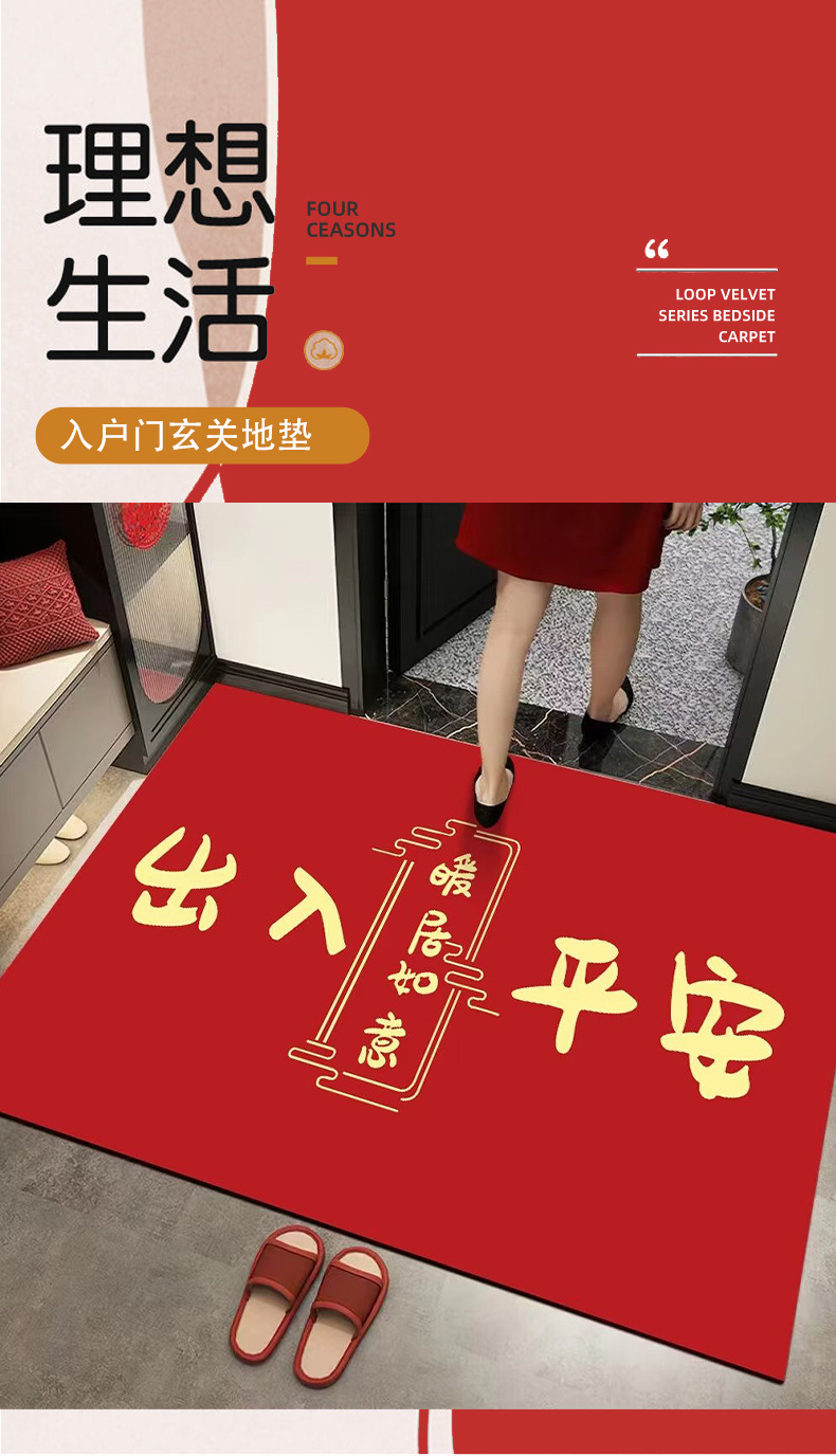 新款入门地垫出入平安门口地垫水晶绒吸水防滑出入平安入户垫子