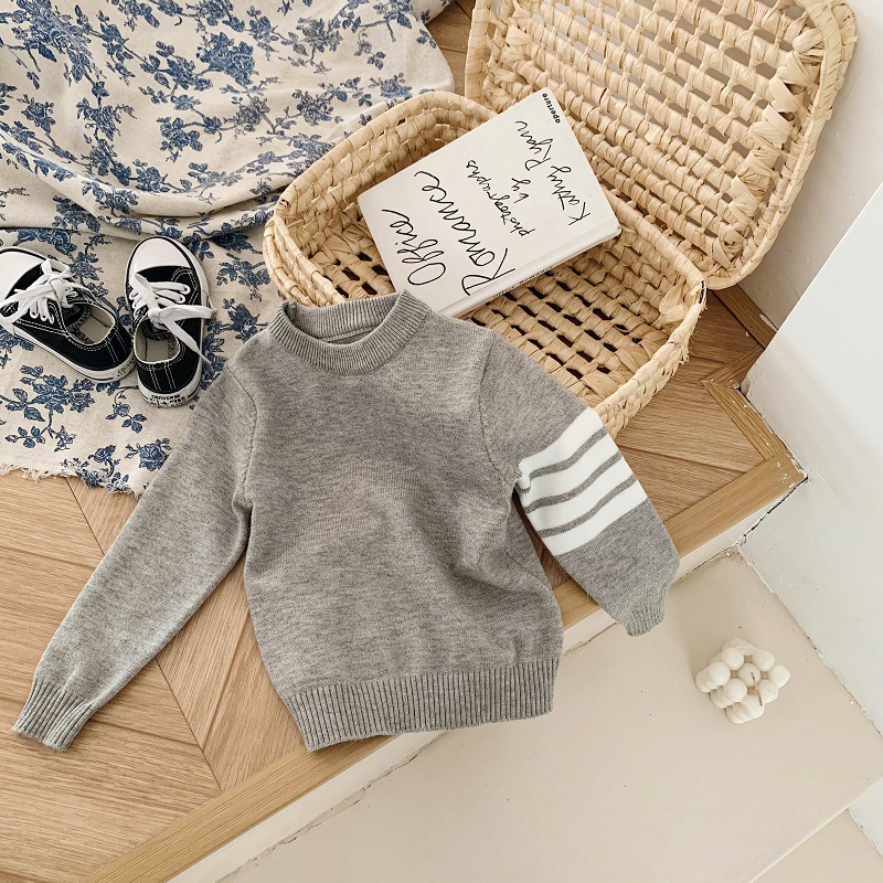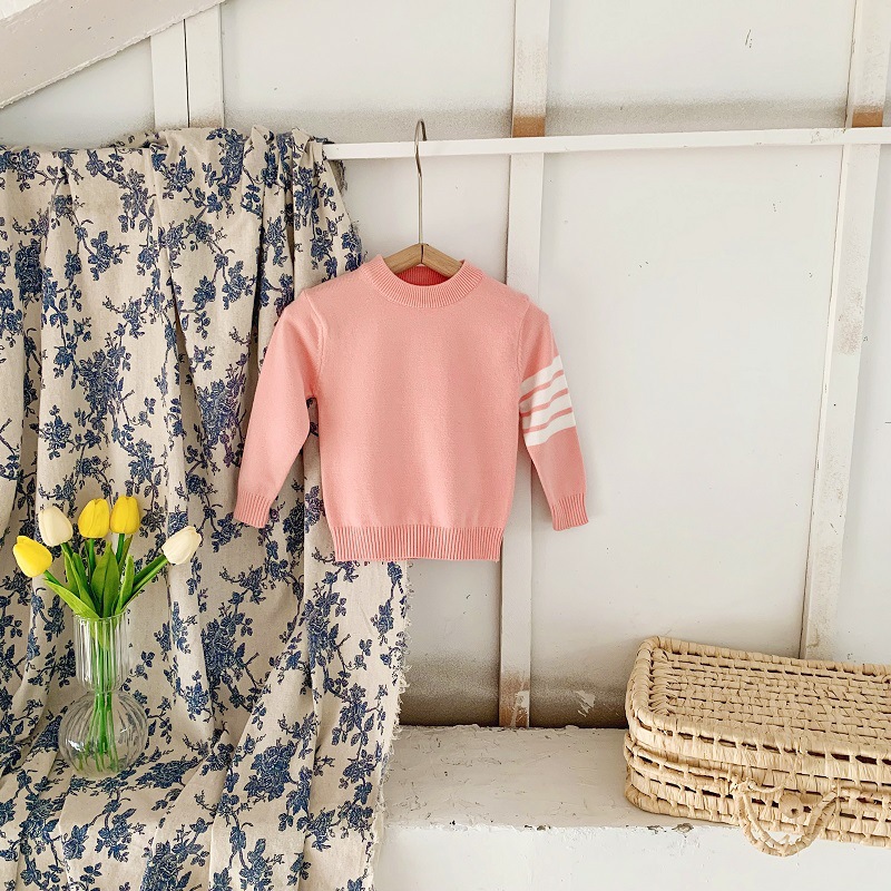 秋冬儿童毛衣男女宝宝纯色TB四条杠糖果色打底衫童装套头针织毛衣