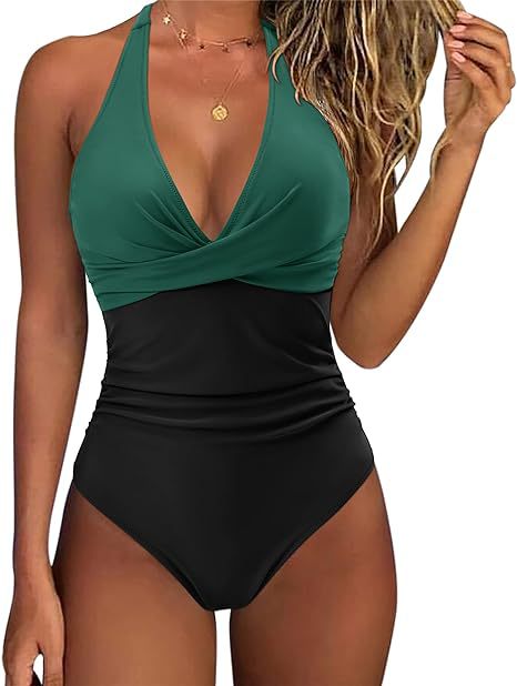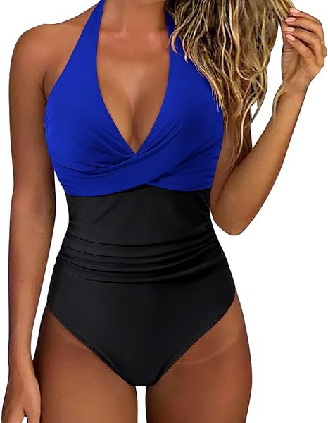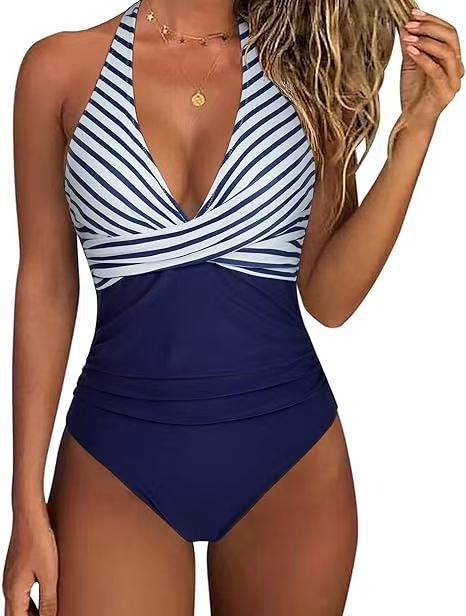 아마존 폭발성 원피스 수영복 여성 패션 섹시 교수형 넥 스트랩 수영복 크로스 백리스 수영복