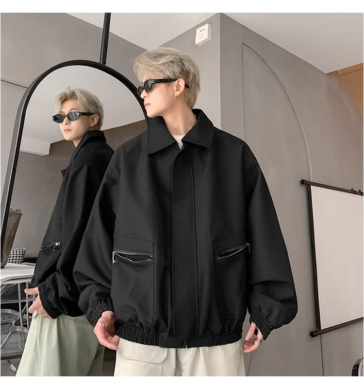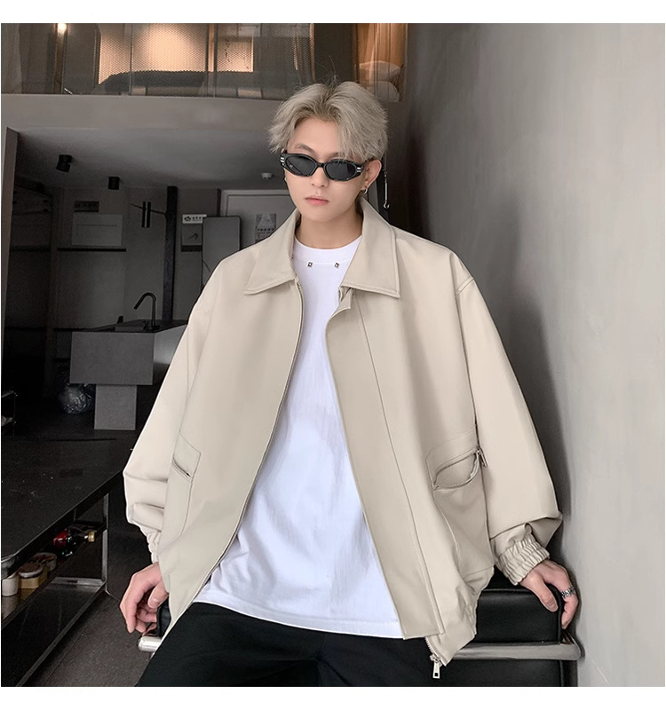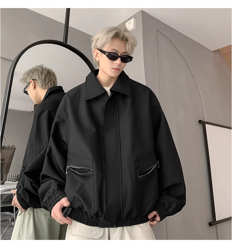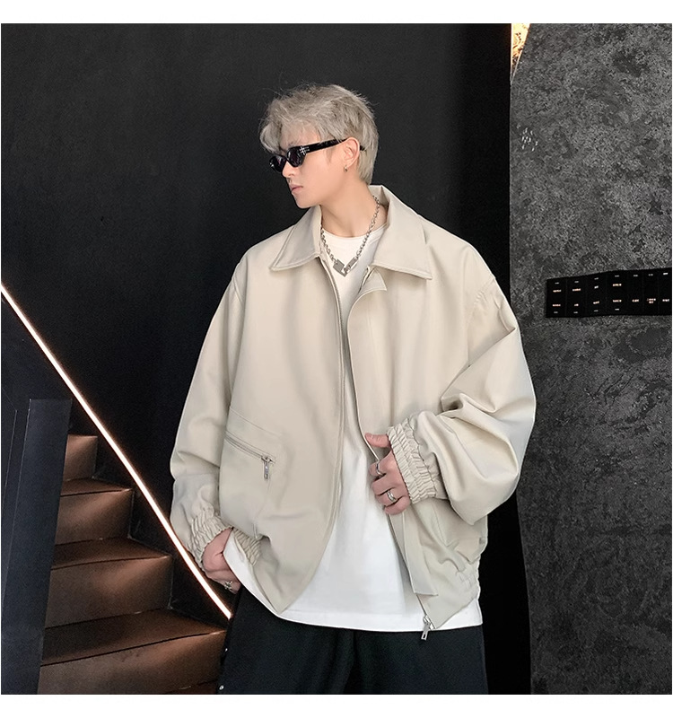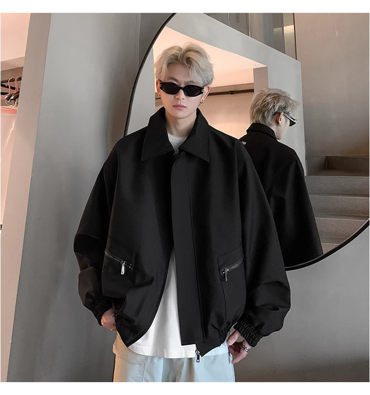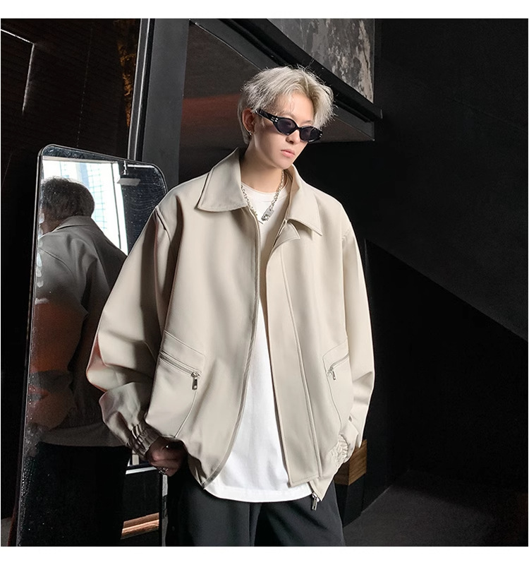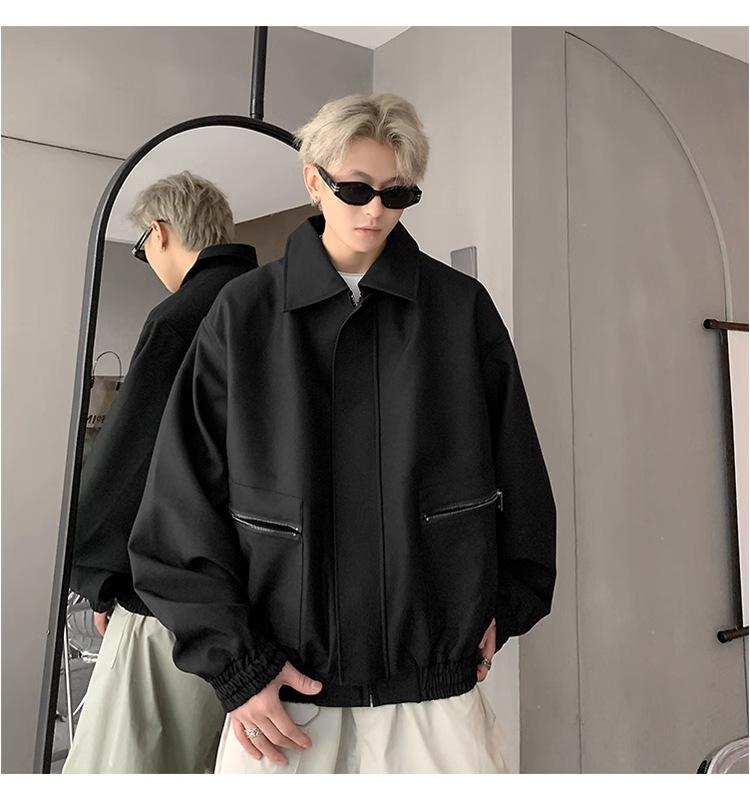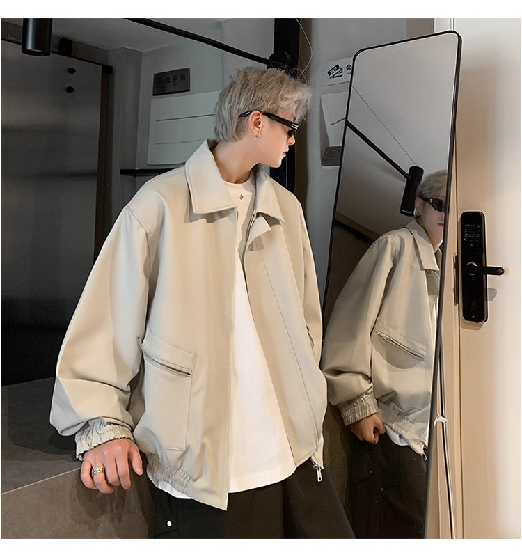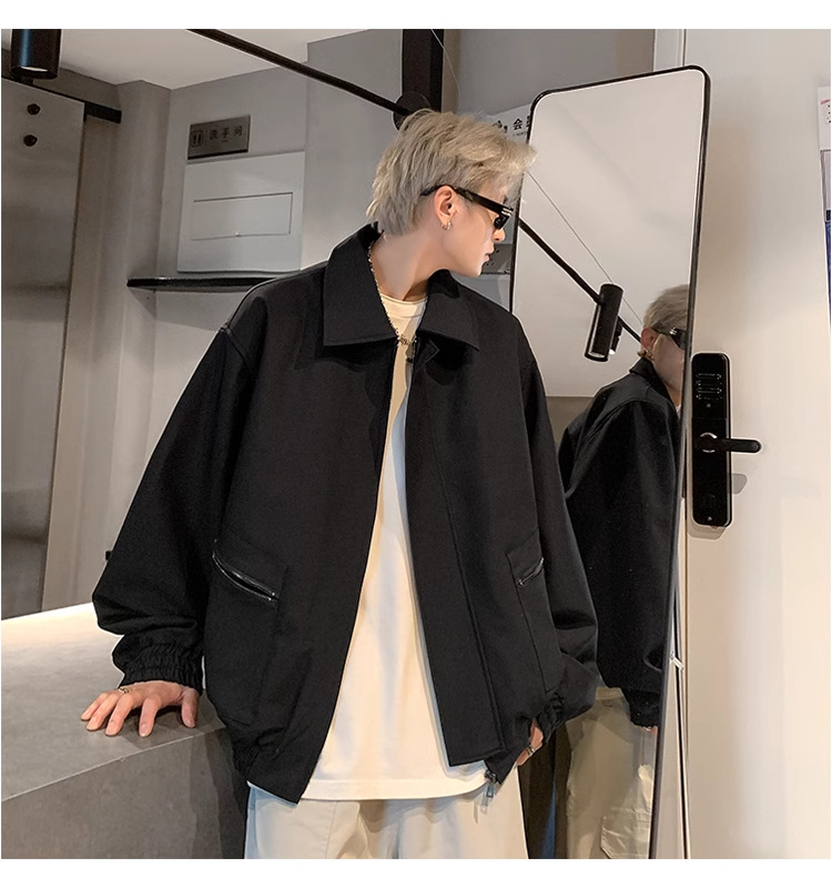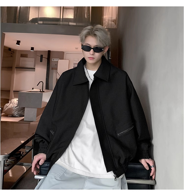 아메리칸 스타일 레트로 옷깃 재킷 남자의 2024 봄과 가을 새로운 유행 브랜드 느슨한 비행 세트스토어 가기