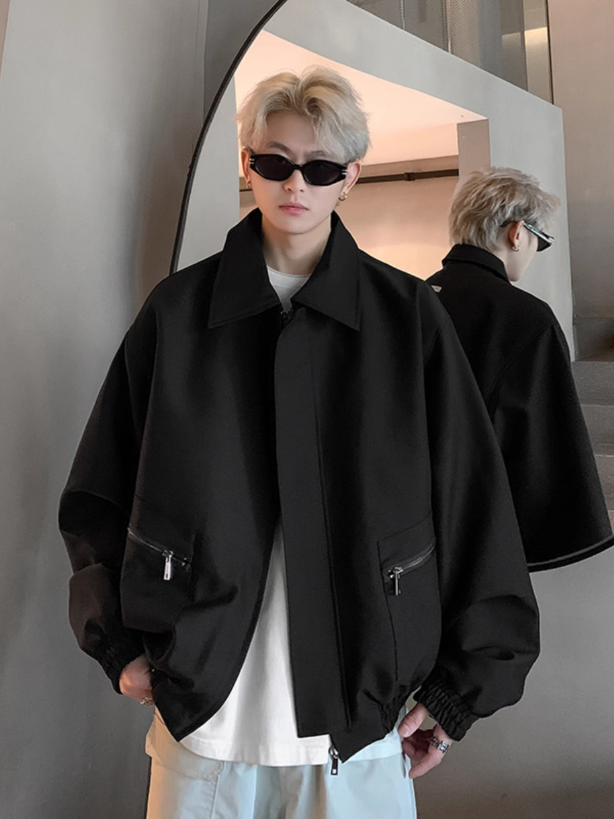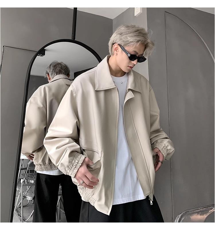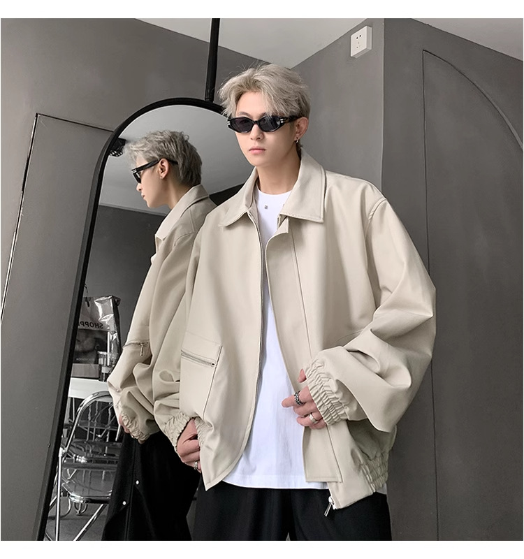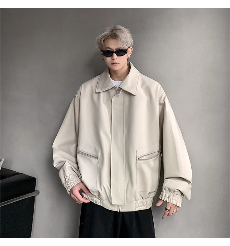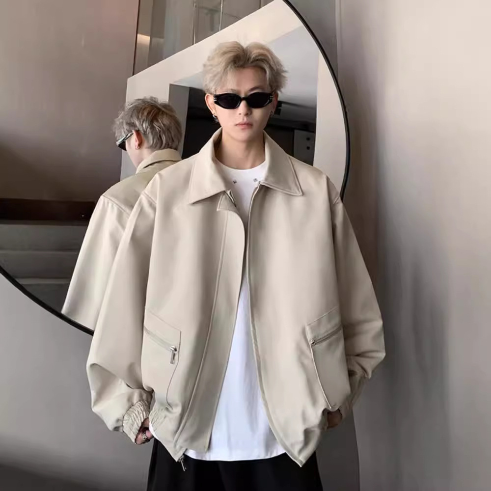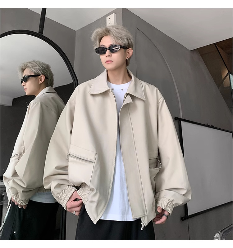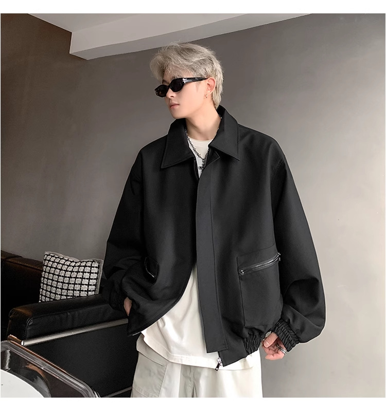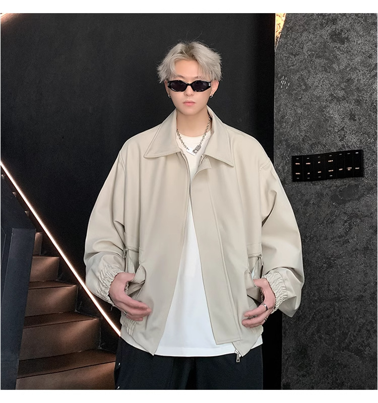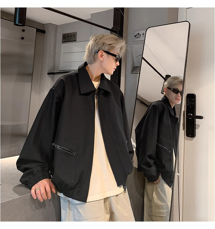 아메리칸 스타일 레트로 옷깃 재킷 남자의 2024 봄과 가을 새로운 유행 브랜드 느슨한 비행 세트스토어 가기