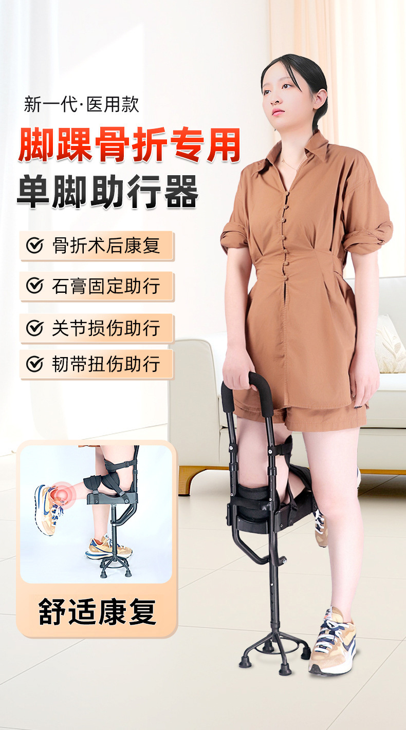 새로운 발목 관절 염좌용, 종아리 및 발목 단일 다리 고정 보조 보행기, 미끄럼 방지 지팡이, 신축식 골절 보행 보조기스토어 가기