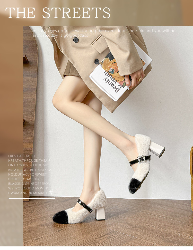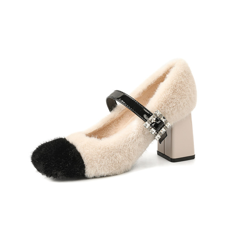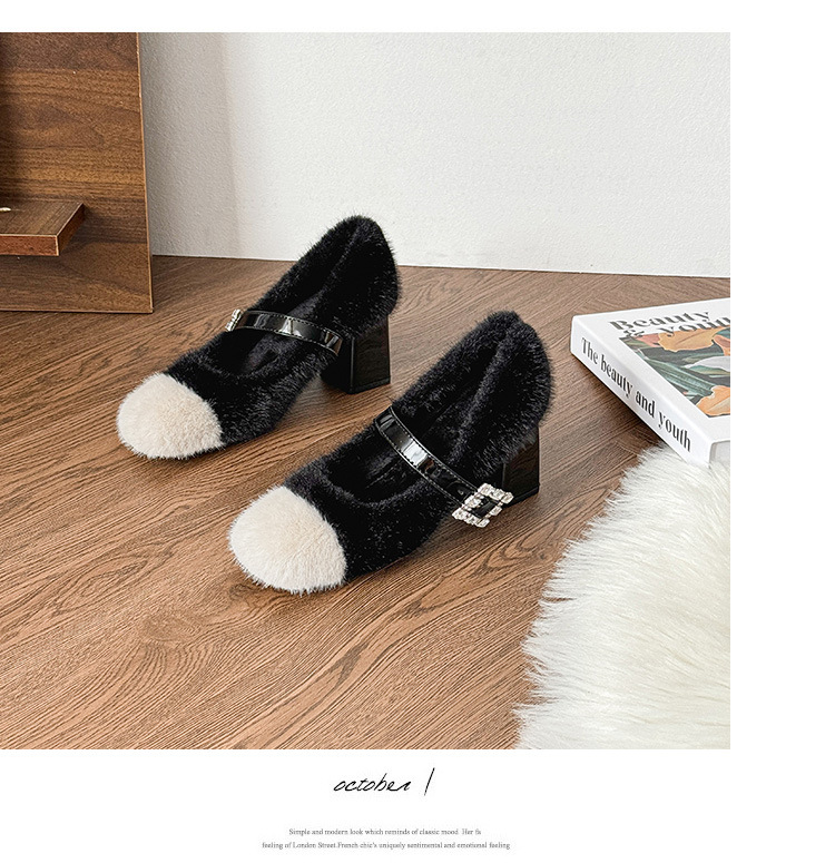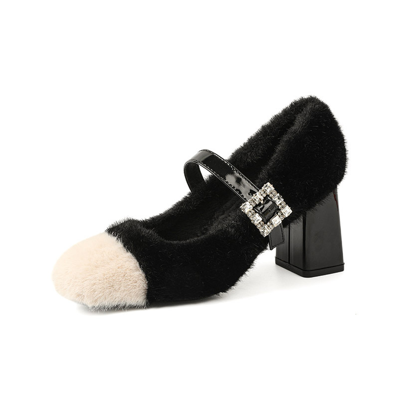 X602-b1 패션 브랜드 프랑스 마오마오 하이힐 슈즈 여성용 겨울 아우터 두꺼운 힐링 하이힐 2024 새로운 페어리 스타일 여성