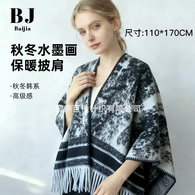 모방 캐시미어 목도리 하이 엔드 잉크 페인팅 패턴 여성의 겨울 여행 올 매치 따뜻한 스카프 두꺼운 술 케이프