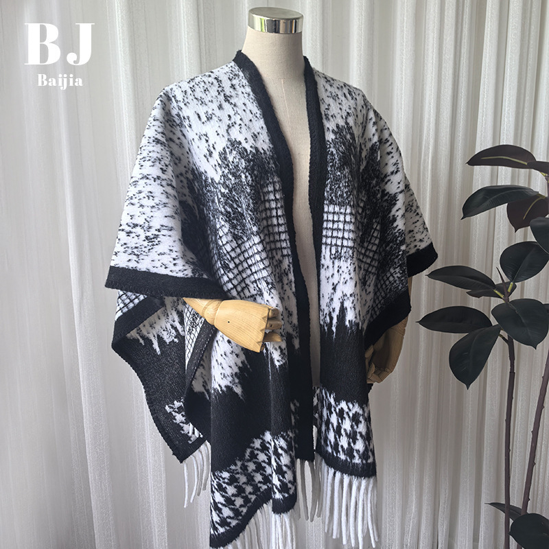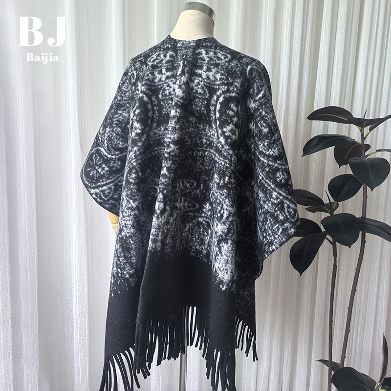 모방 캐시미어 목도리 하이 엔드 잉크 페인팅 패턴 여성의 겨울 여행 올 매치 따뜻한 스카프 두꺼운 술 케이프스토어 가기