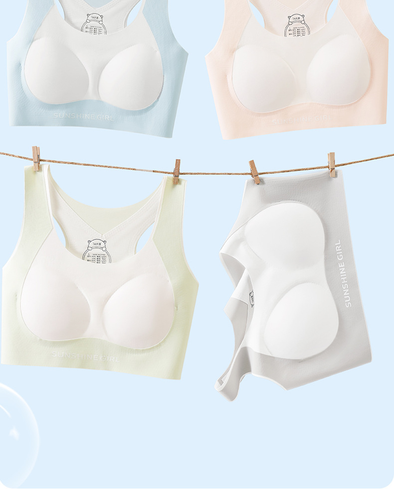 여름용 얇은 아이스 실크 노라인 브라, 중고등학생을 위한 가볍고 통기성 좋은 스포츠 충격방지 발달기 소녀 속옷
