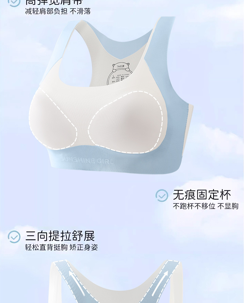 여름용 얇은 아이스 실크 노라인 브라, 중고등학생을 위한 가볍고 통기성 좋은 스포츠 충격방지 발달기 소녀 속옷스토어 가기