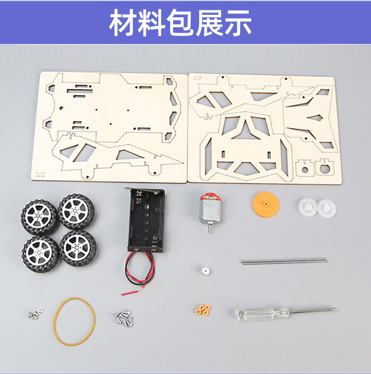 과학 실험 DIY 4 륜 구동 자동차 경주 기술 소형 생산 어린이의 수제 물리적 교육 보조 재료 STEM