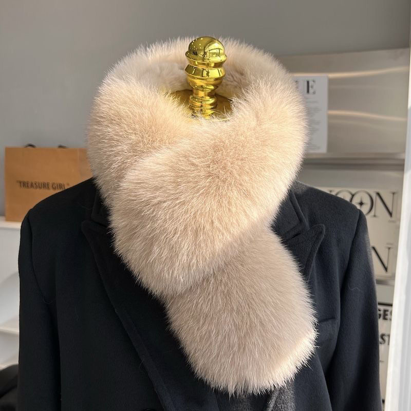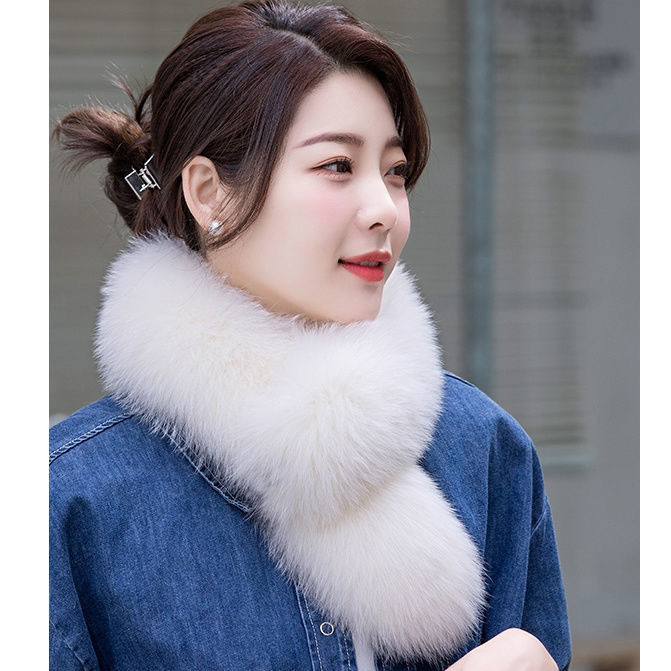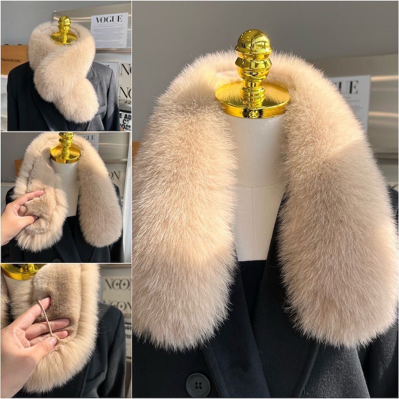 진짜 여우털 스카프 양면 모피 가을 겨울 두꺼운 보온 다용도 모피 목도리 심플하고 우아한 렉스 토끼털 칼라스토어 가기