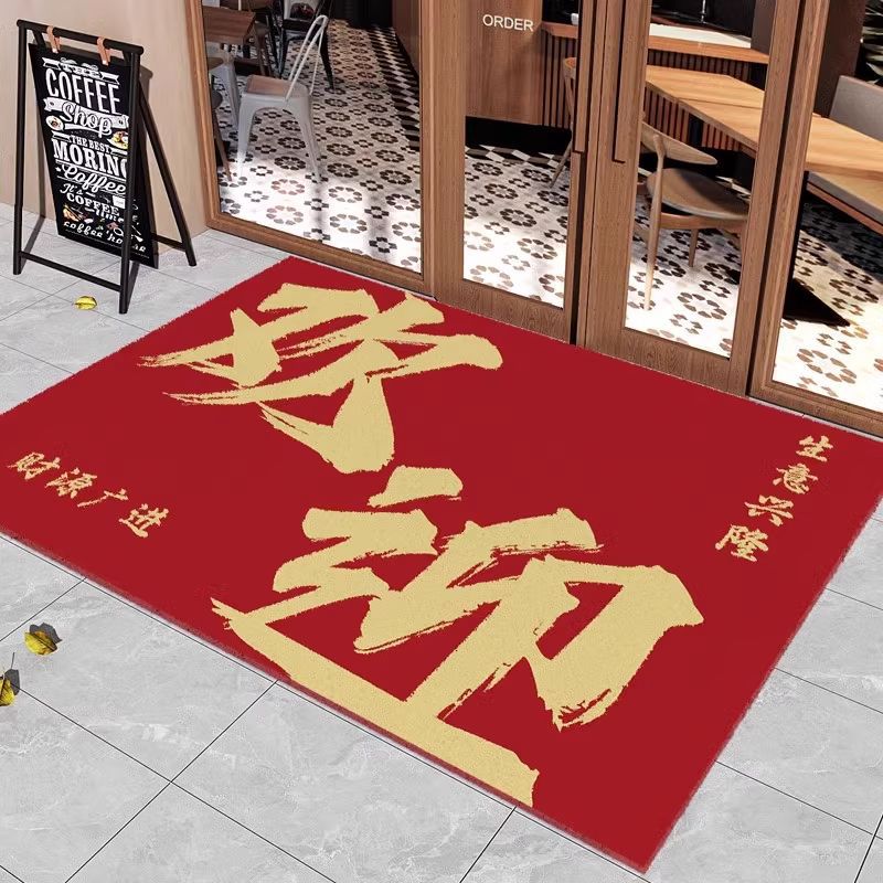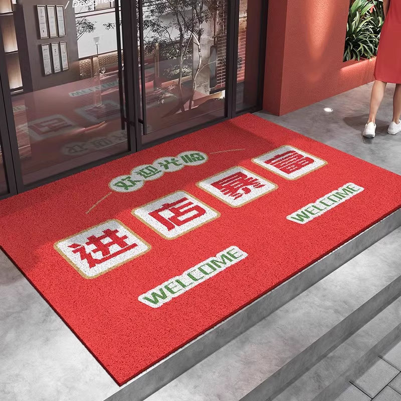 실크 서클이 풍부한 호텔 도어 매트 상업 붉은 먼지 방지 풋 매트 상점에 카펫에 오신 것을 환영합니다스토어 가기