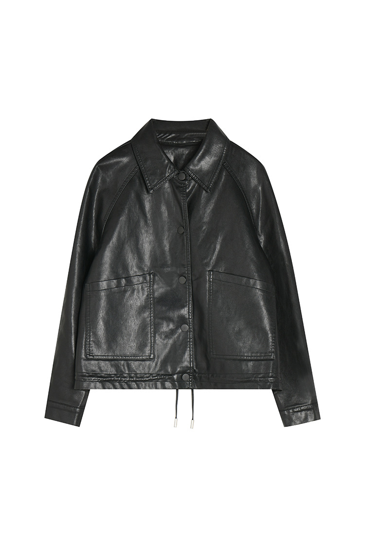 ● 货号:18663 ● 款名:抽绳皮衣外套