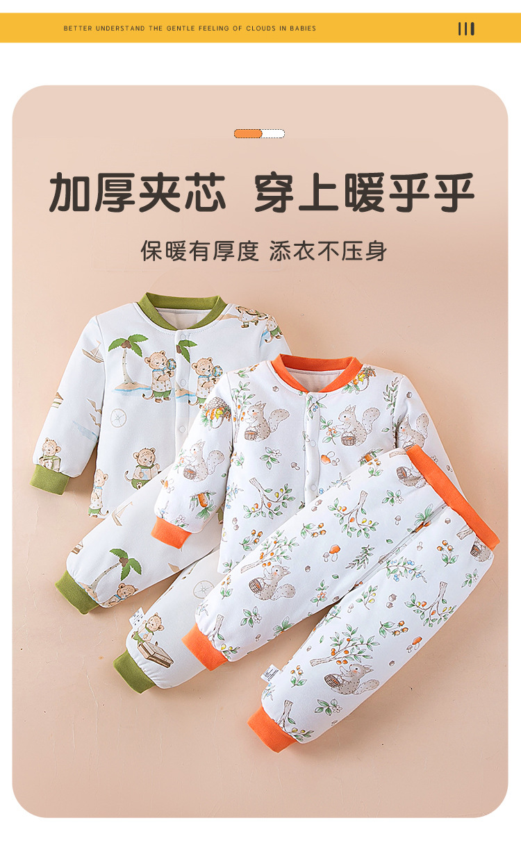 가을과 겨울을위한 어린이 세트 소년의 코튼 패딩 재킷 투피스 두꺼운 귀여운 서양식 아기 소녀의 코튼 패딩 재킷스토어 가기