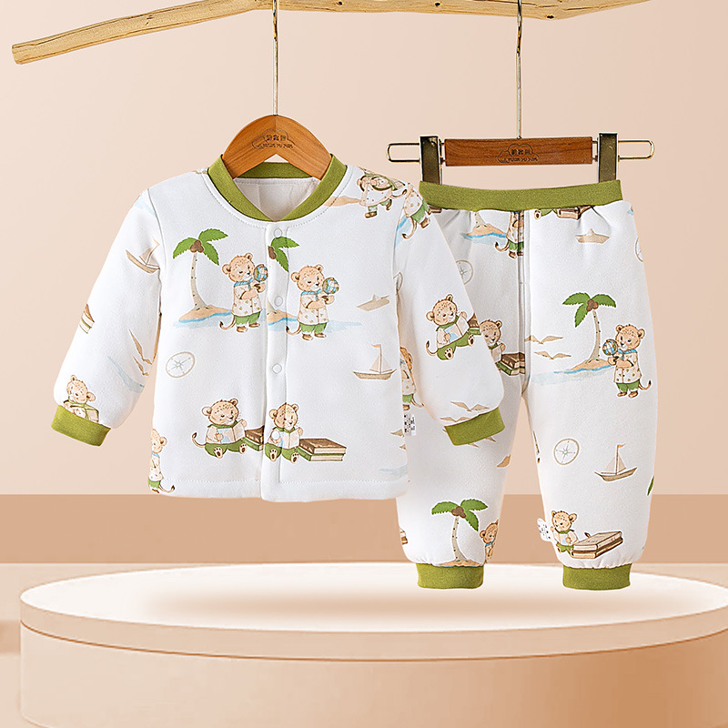 가을과 겨울을위한 어린이 세트 소년의 코튼 패딩 재킷 투피스 두꺼운 귀여운 서양식 아기 소녀의 코튼 패딩 재킷